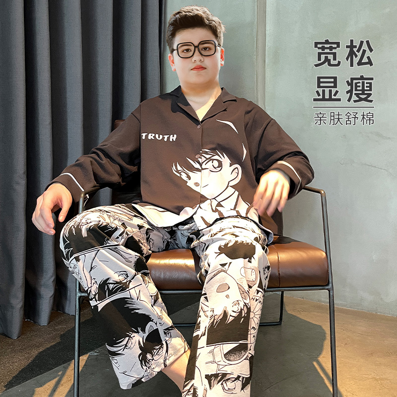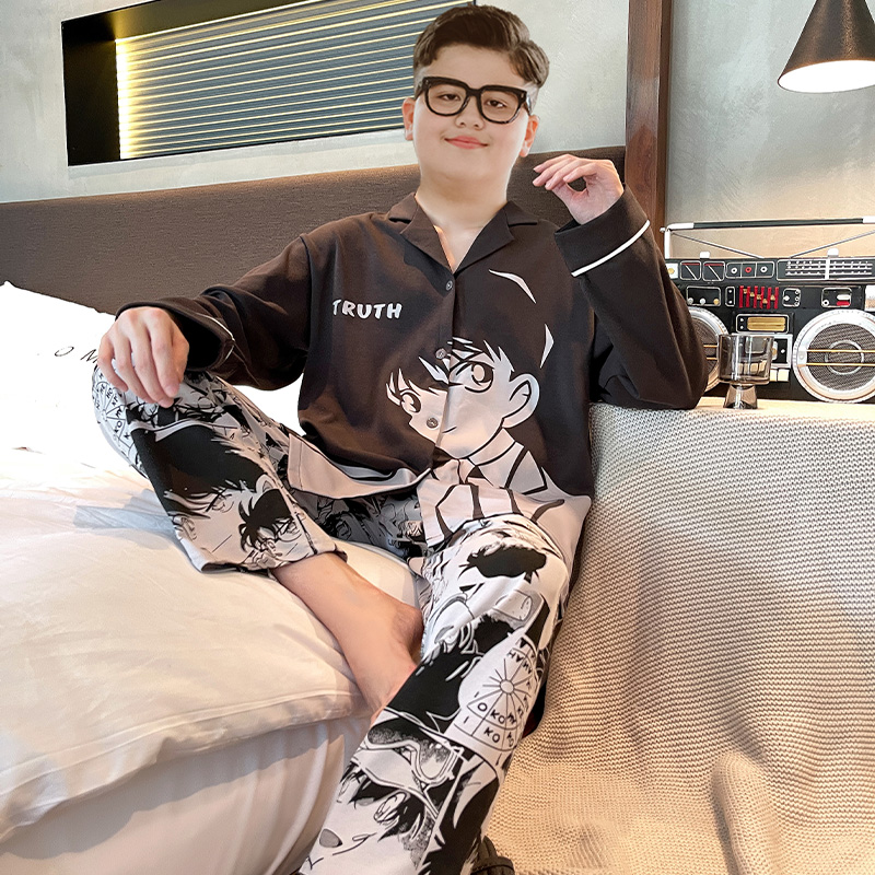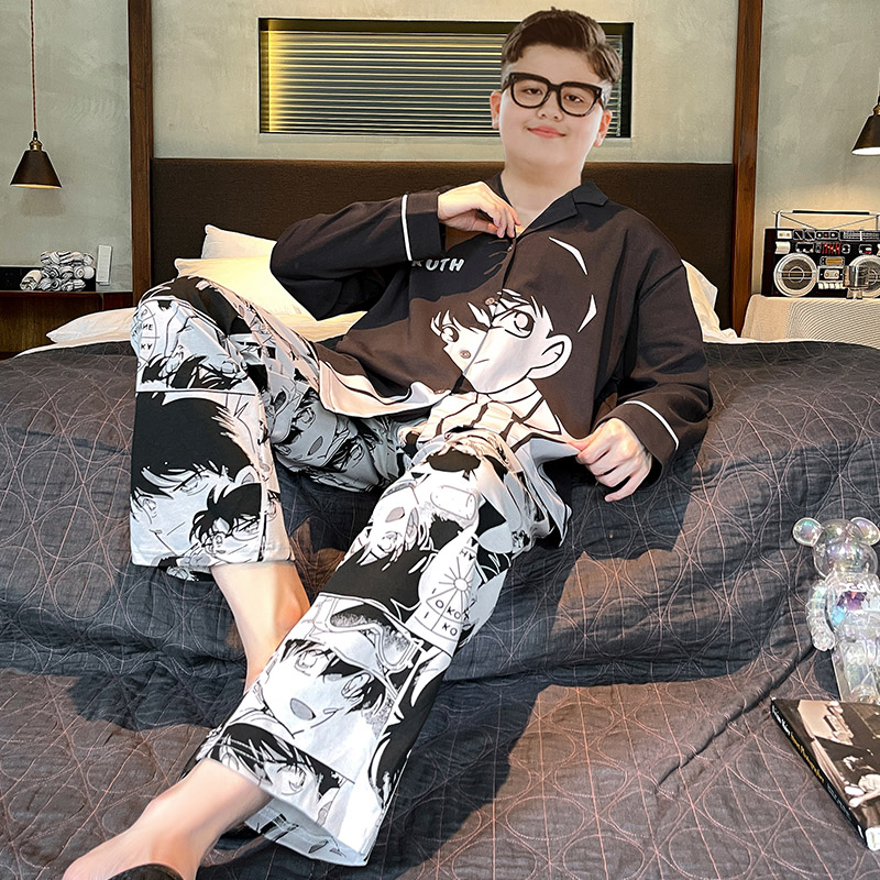 胖童装睡衣全棉儿童长袖男童家居服青少年套装春秋款大童加肥加大