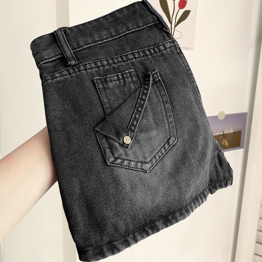 黑灰色高腰牛仔短裙女夏季新款设计感小个子宽松遮胯显瘦a字裙裤