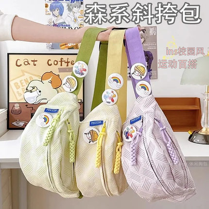 简约可爱休闲腰包时尚ins小清新森系斜挎包斜挎包女运动森系胸包