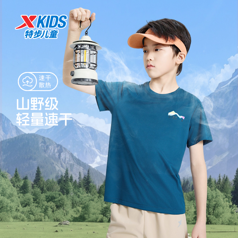 特步童装儿童速干短袖T恤男童夏季新款户外上衣中大童圆动短T夏装