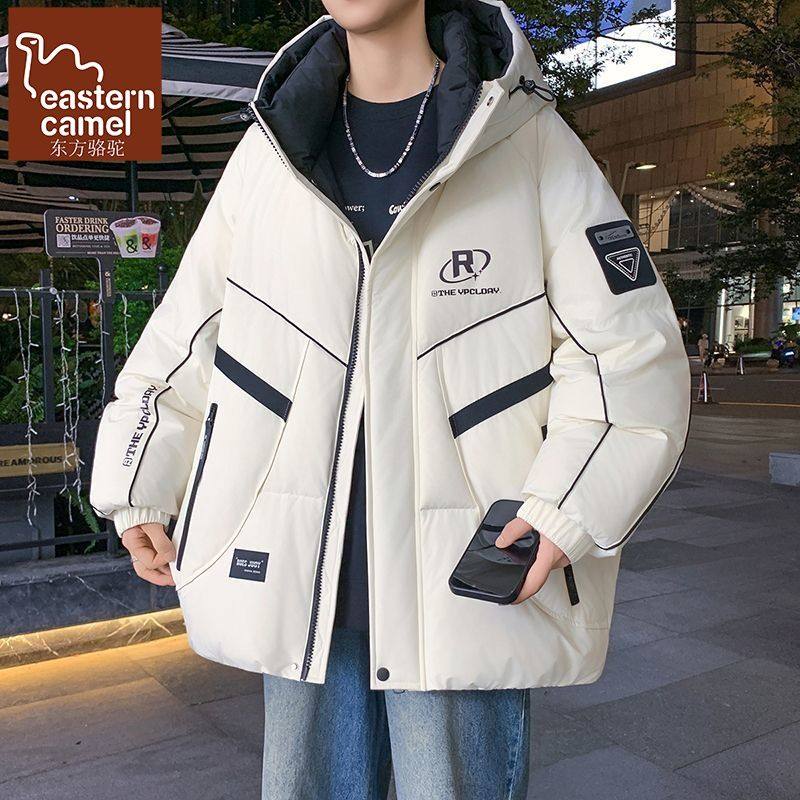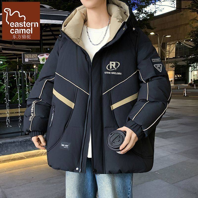 羽绒服男冬季2025新款肌理感工装外套男连帽加厚青少年冬装防寒服