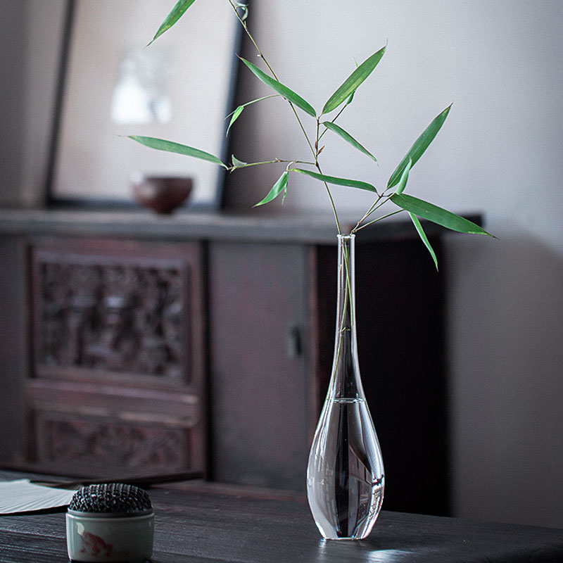禅意日式玻璃花瓶侘寂风ins小口花器插花水养家居客厅小清新摆件