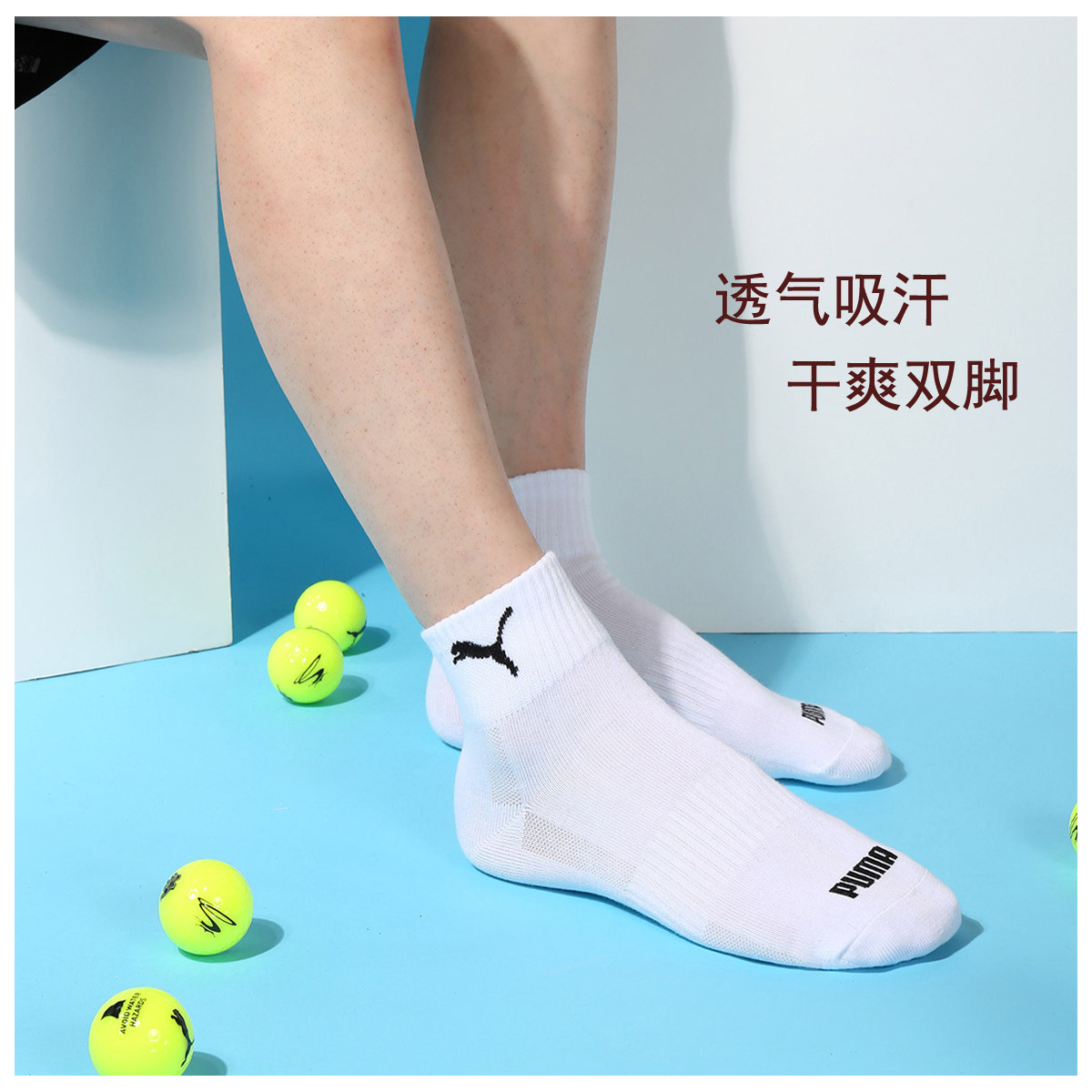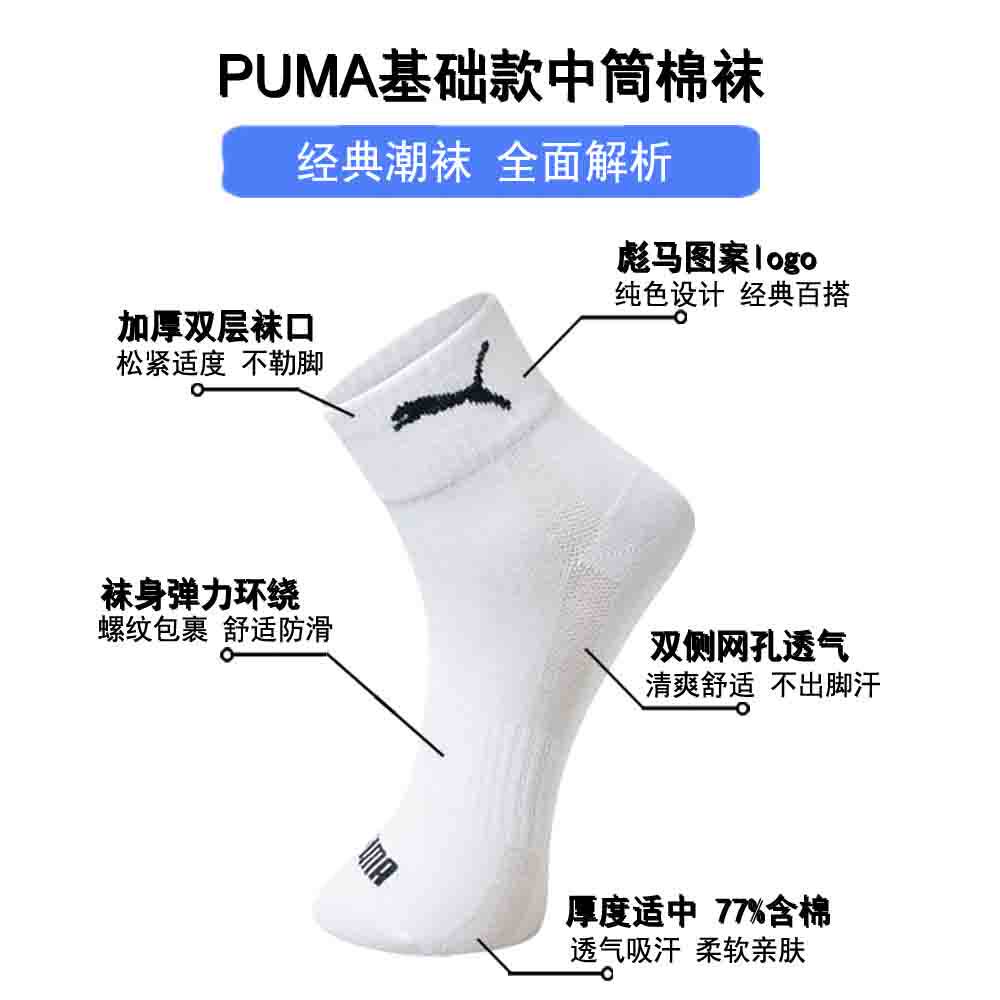 彪马男女款中筒棉袜运动吸汗3双