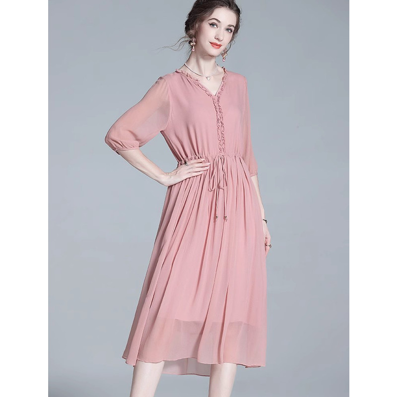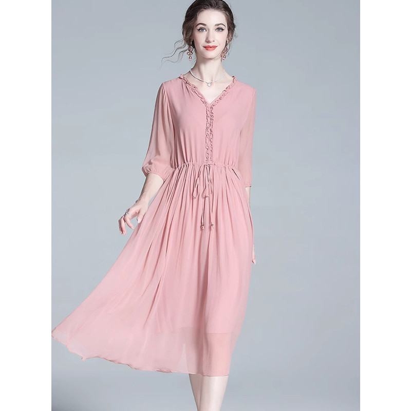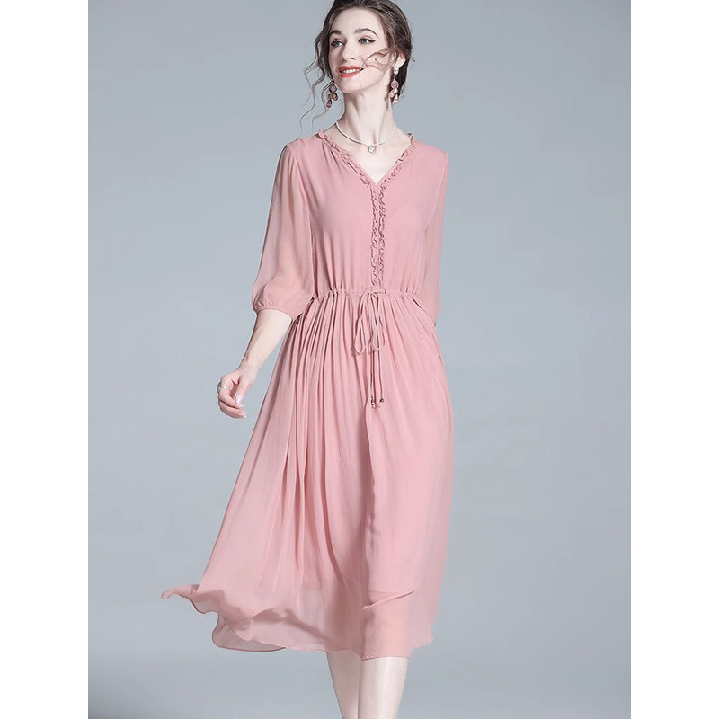 杭州真丝连衣裙夏季2024新款高贵轻奢优雅气质裙温柔减龄桑蚕丝裙