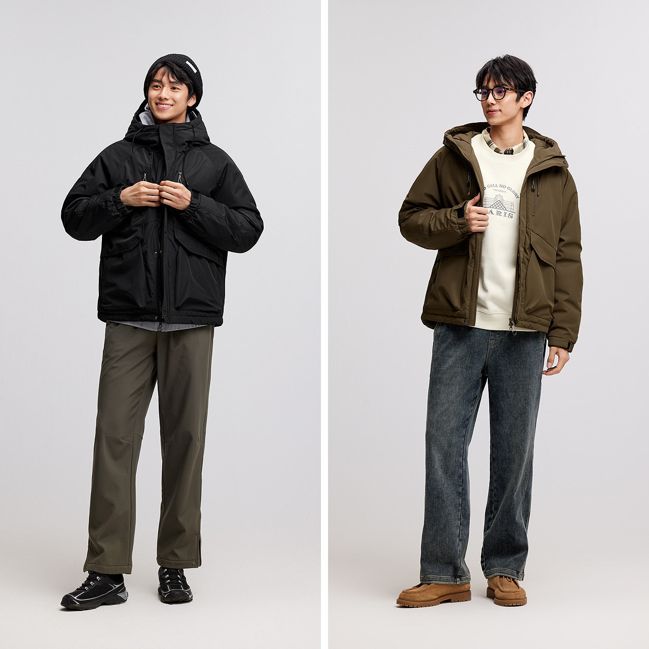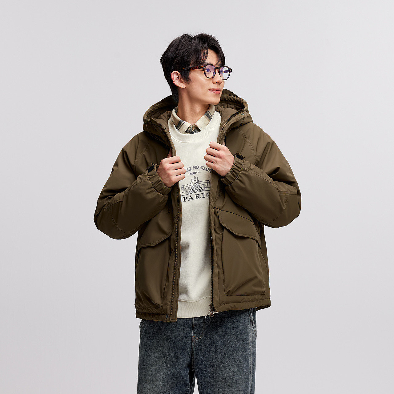 森马棉服男防风三防外套短款工装山系户外棉衣连帽上衣冬装轻薄款