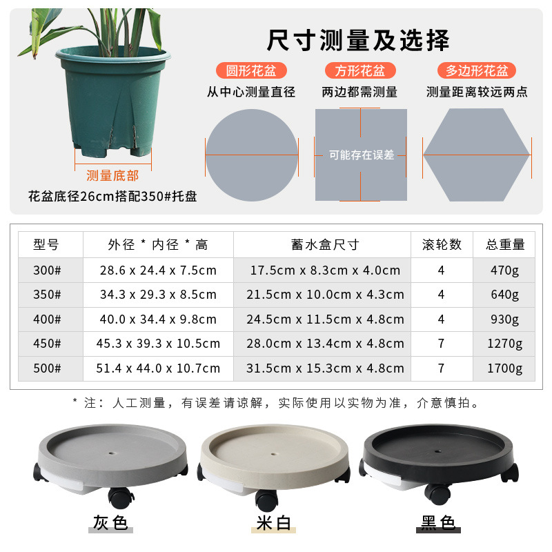 花盆托盘带轮加厚万向轮滑轮大号圆形移动底座接水盘垫底底托花托