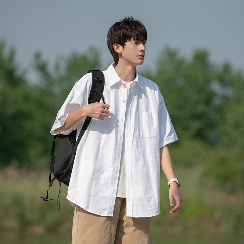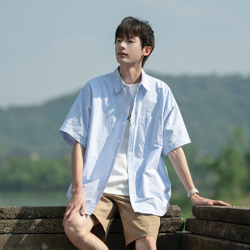 迈特优日系工装衬衫男夏季潮牌少年感休闲衬衣学院风短袖外套