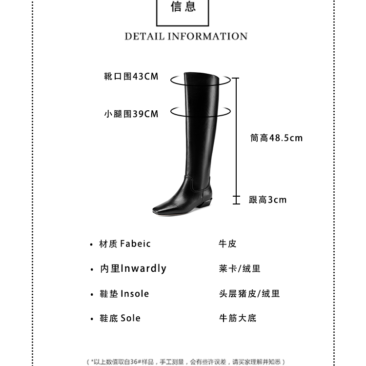 跟高3CM~粗腿大筒围过膝长靴简约复古通勤英伦方头时尚粗跟平跟女