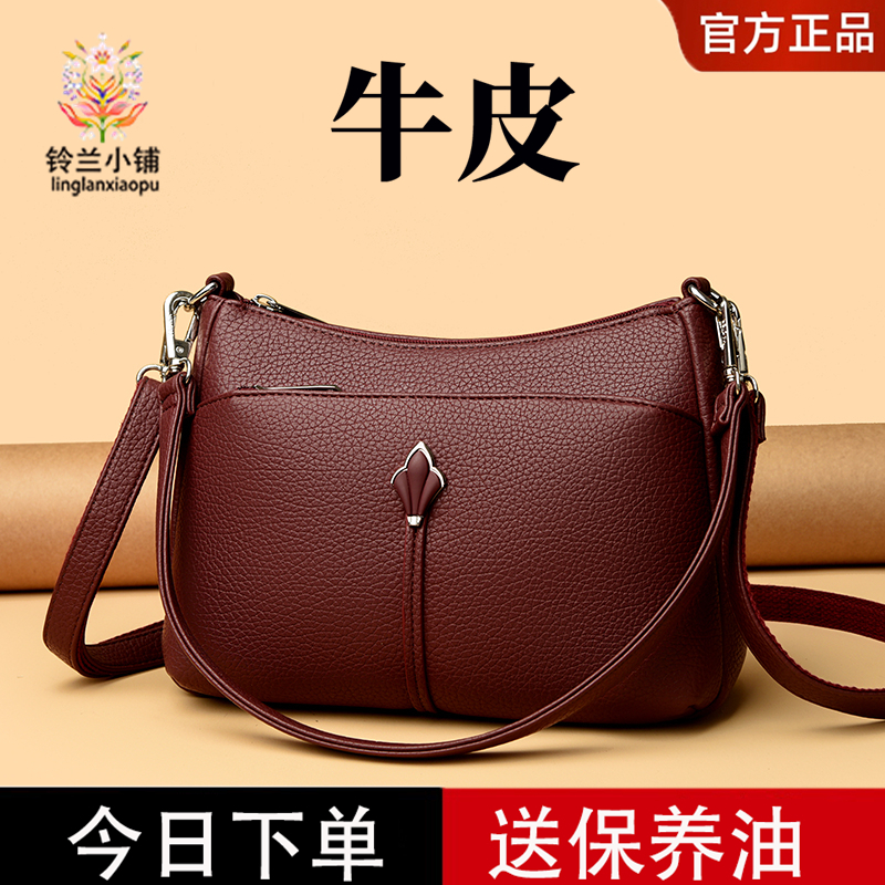 正品真皮女包包2025新款时尚中年妈妈包百搭软皮大容量单肩斜挎包