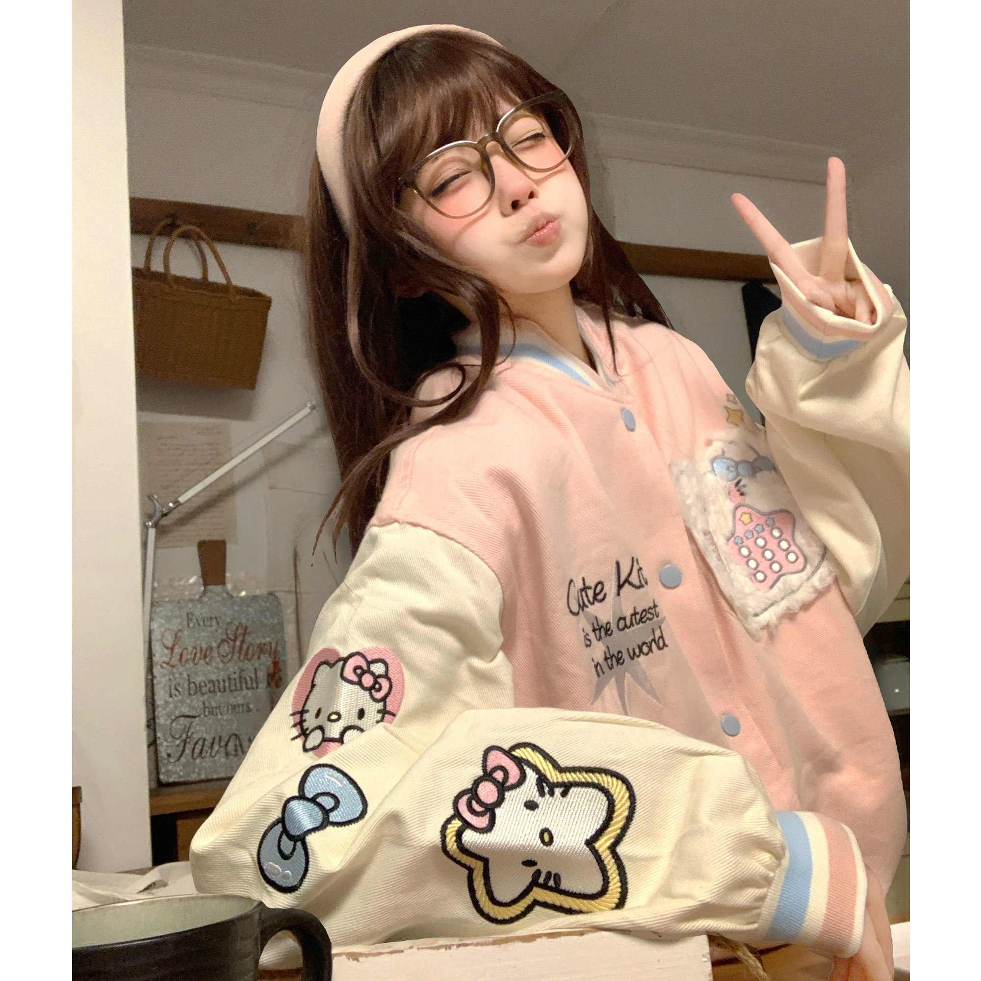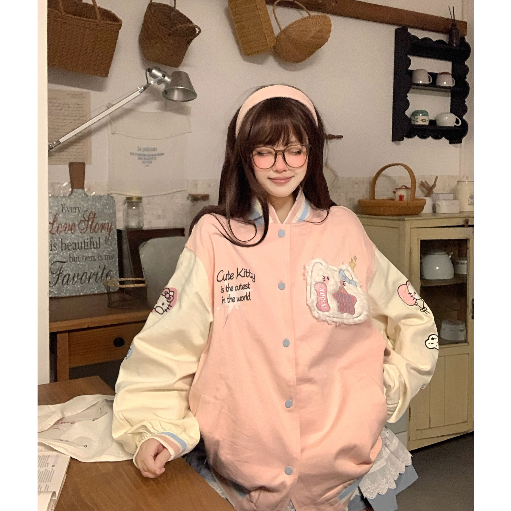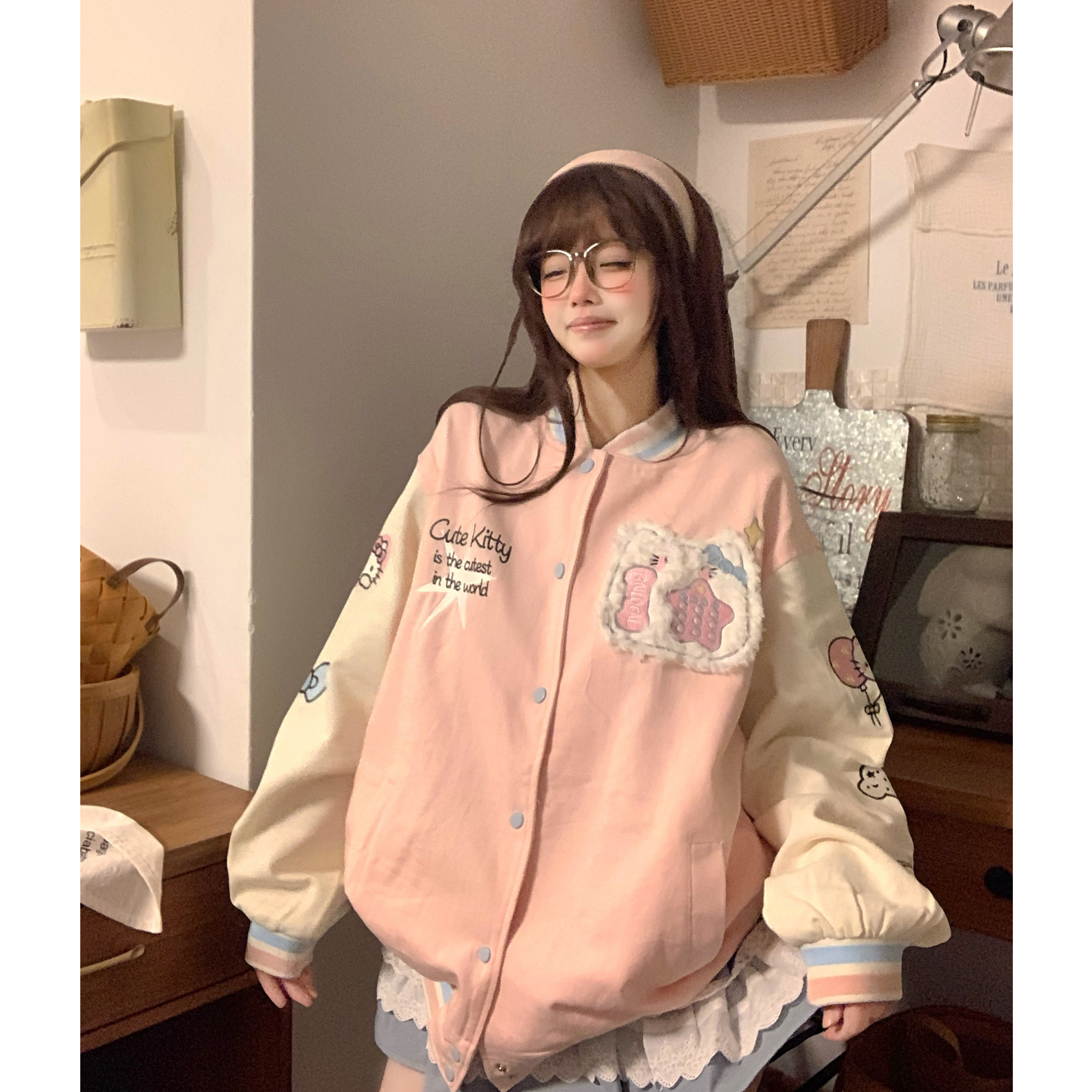土豆猫粉色kitty猫棒球服外套女