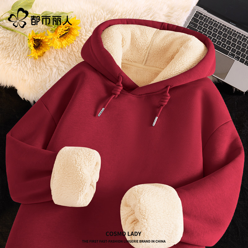 都市丽人红色卫衣女款2026新款冬加绒厚时尚女装本命年马年衣服X
