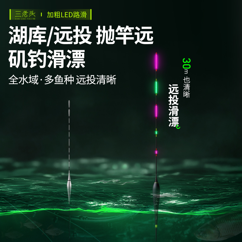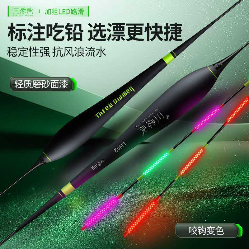 三老头远投路滑浮漂醒目LED夜光漂矶钓浮标鲫鱼漂变色大物电子漂