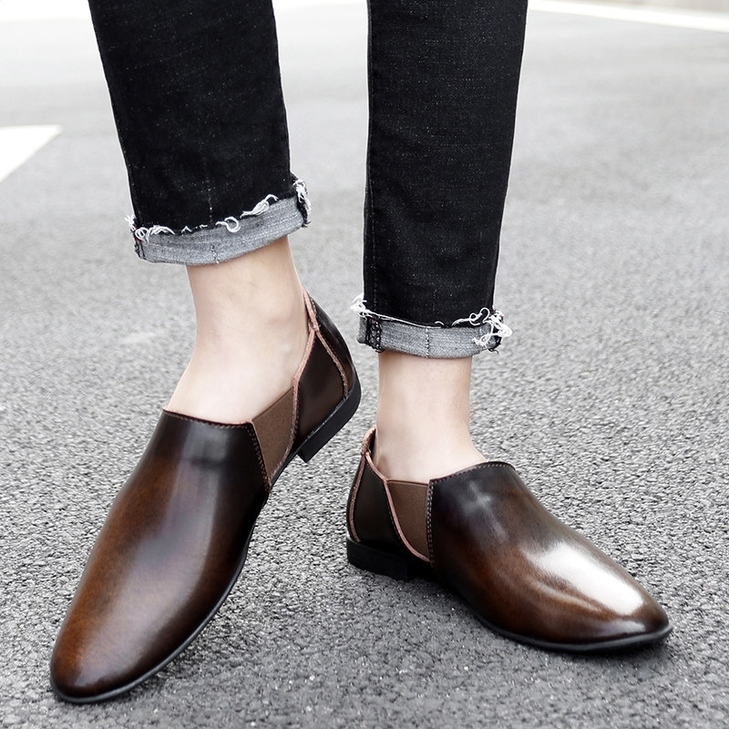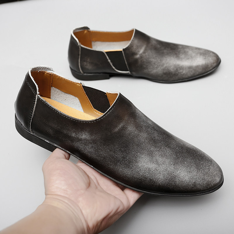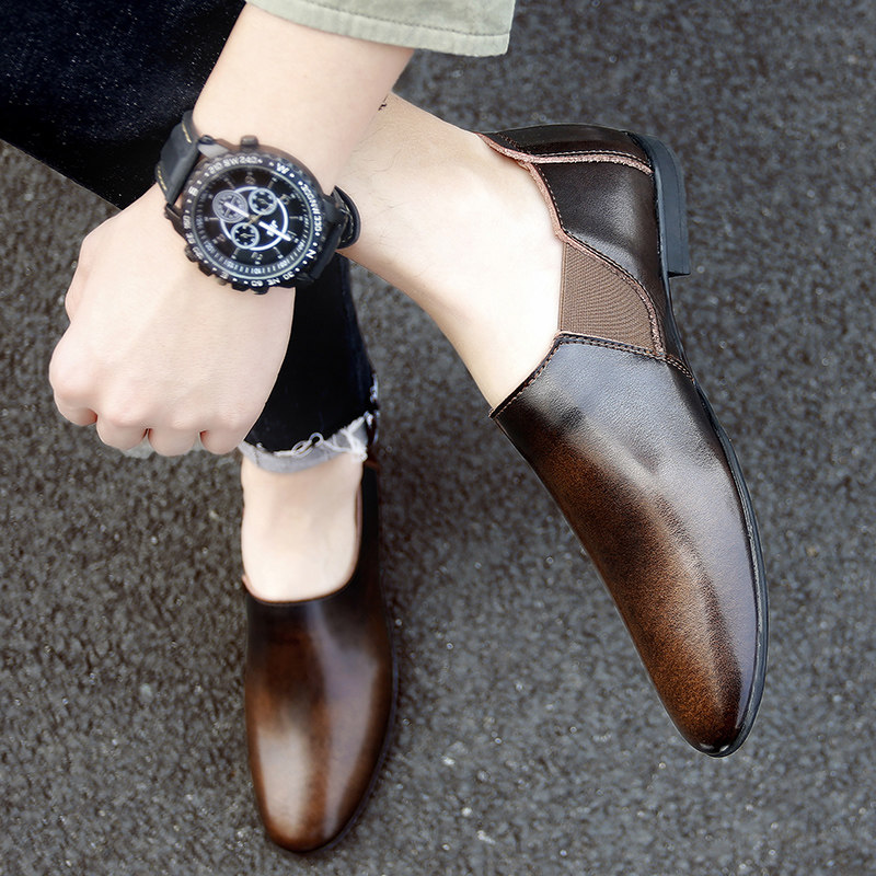 尖头休闲男皮鞋2025新款轻便软低真皮小码时尚潮流一脚蹬豆豆鞋男