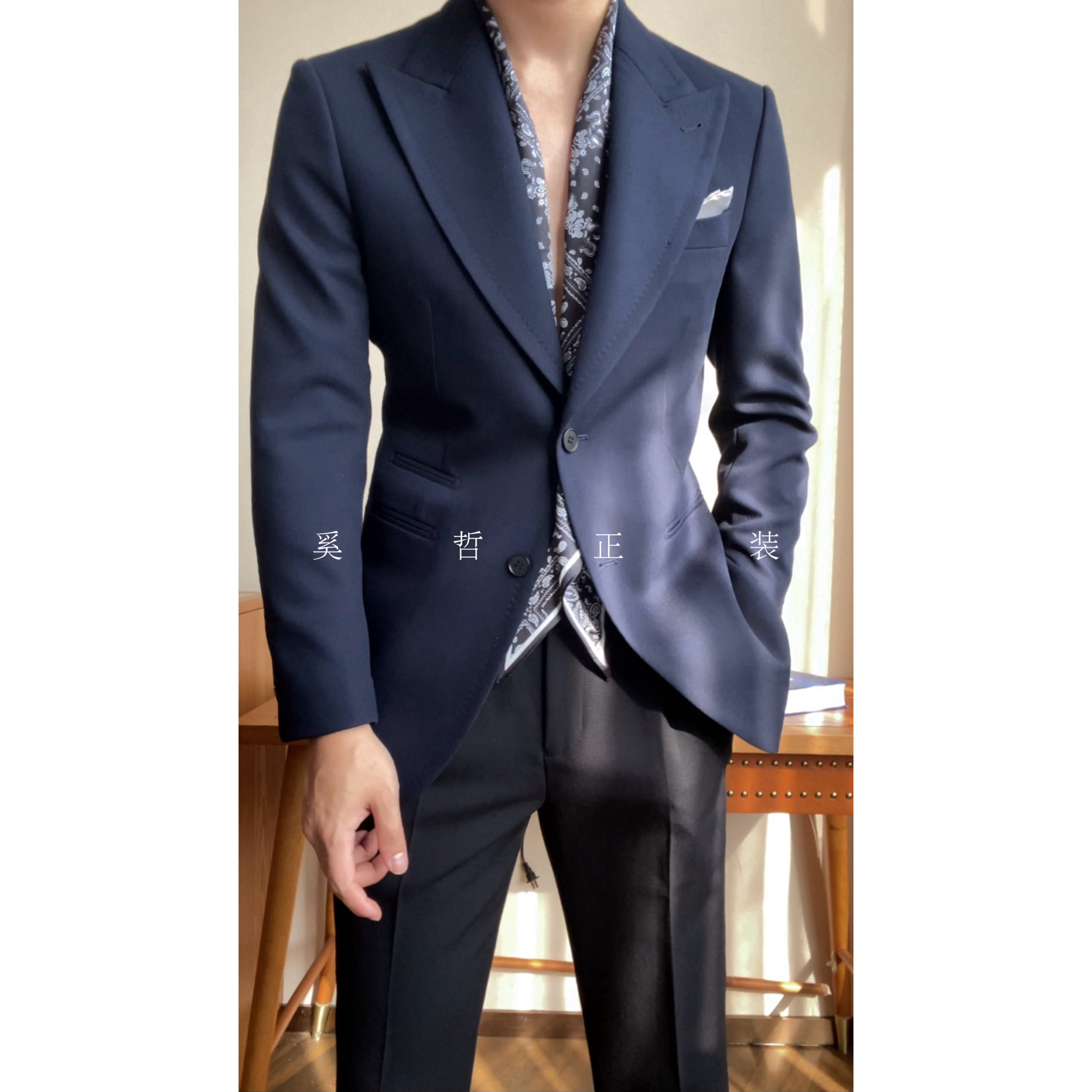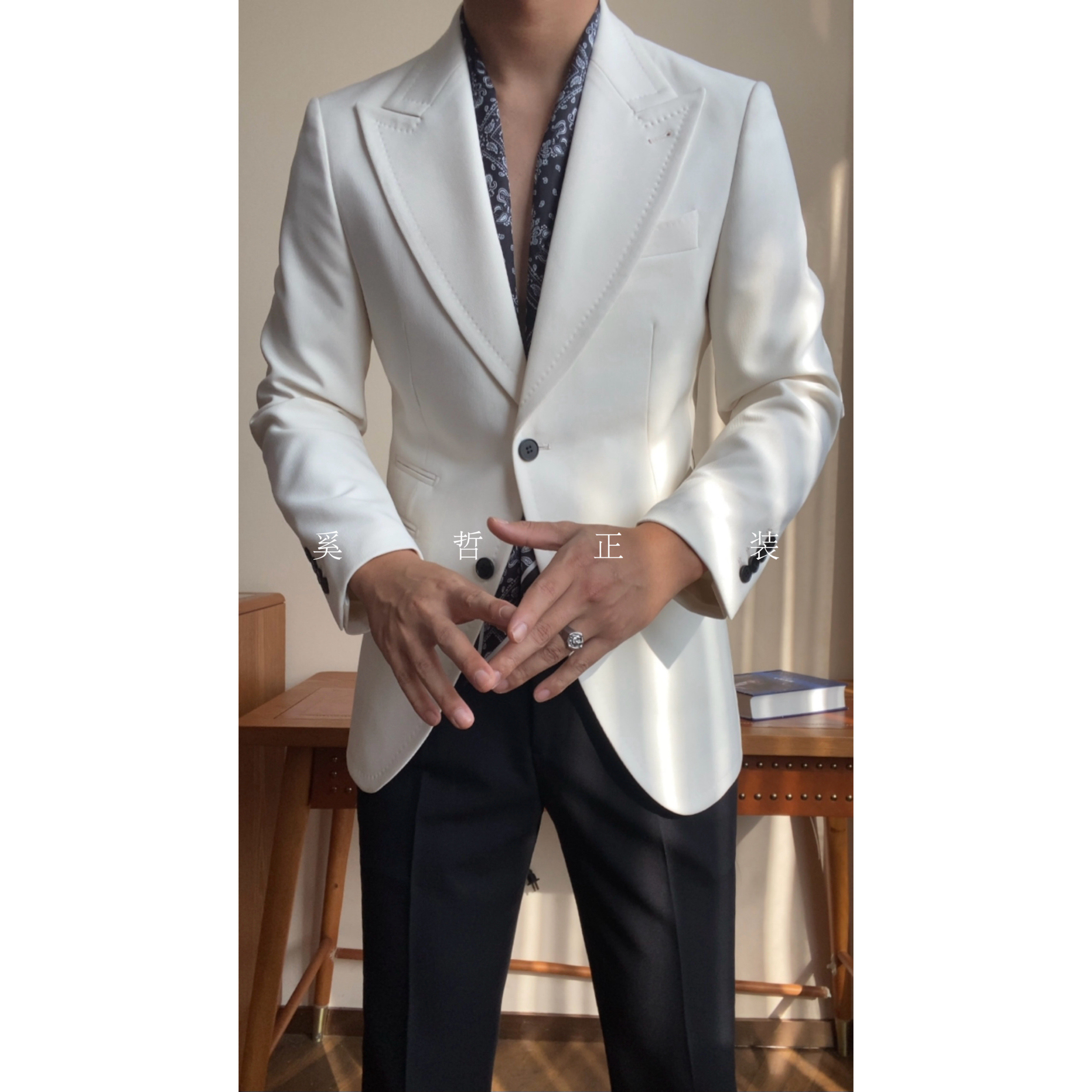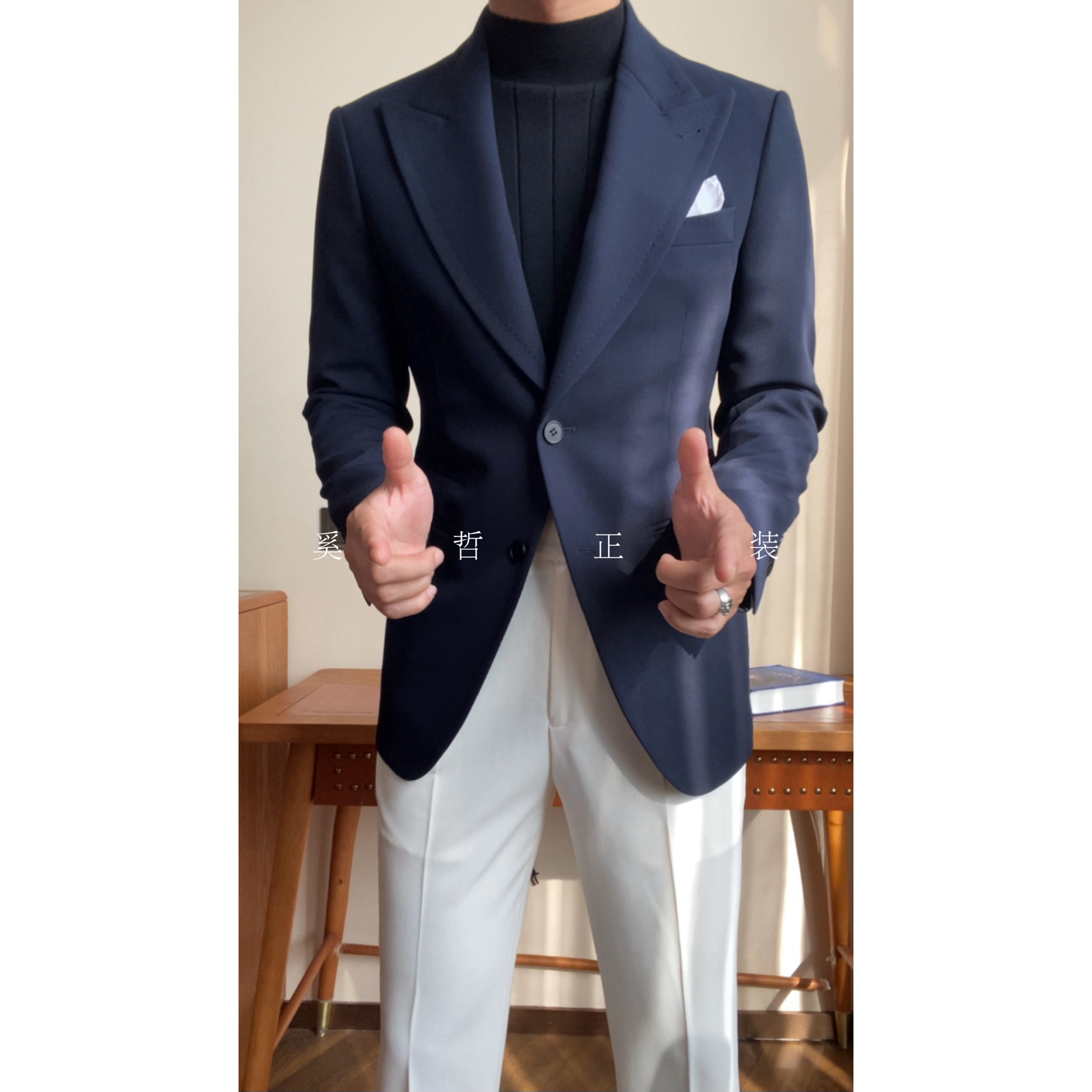 男士新款英式气质戗驳领轻奢休闲通勤款单西外套