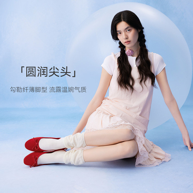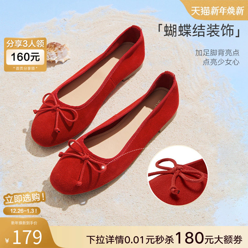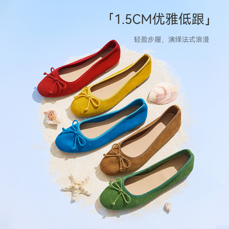 百思图2025秋季新款真皮蝴蝶结一脚蹬单鞋多巴胺浅口女鞋B1833CQ5
