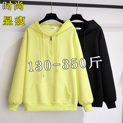 300斤特超大码卫衣女宽松200胖mm中长款遮屁股春秋韩版连帽外套潮