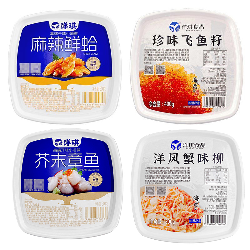 洋琪食品芥末章鱼麻辣鲜蛤海草芥末海螺片鱼籽扇贝裙边日料小菜