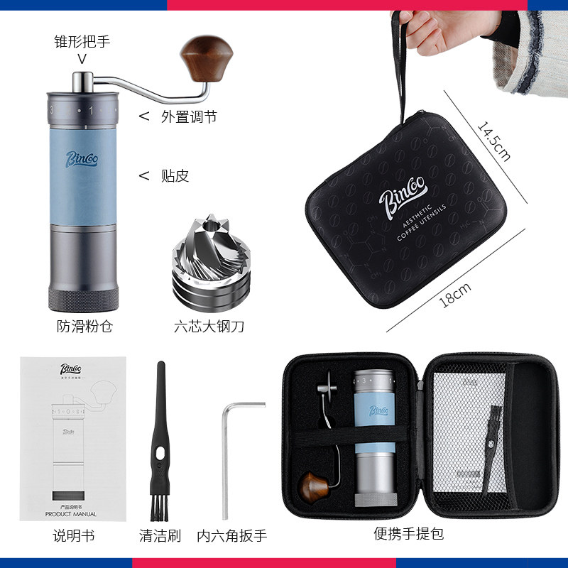 Bincoo 手摇磨豆机SM12外调钢芯升级钛刀咖啡豆研磨机现磨咖啡粉