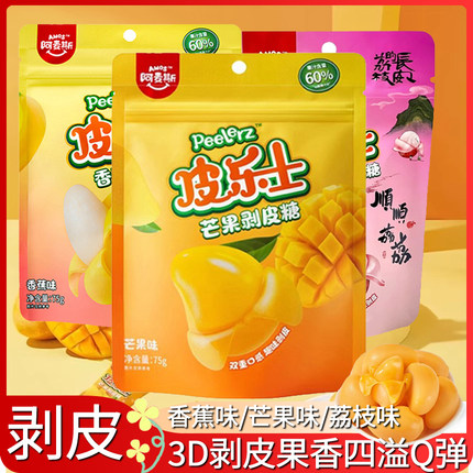 阿麦斯皮乐士芒果剥皮软糖果汁夹心橡皮糖扒皮糖儿童糖果香蕉荔枝