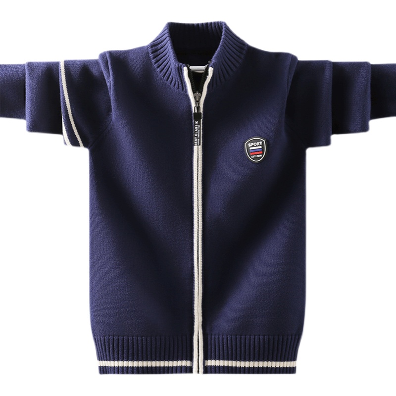 儿童针织开衫毛衣加绒加厚男童2025秋冬中大童拉链衫外套学院风潮