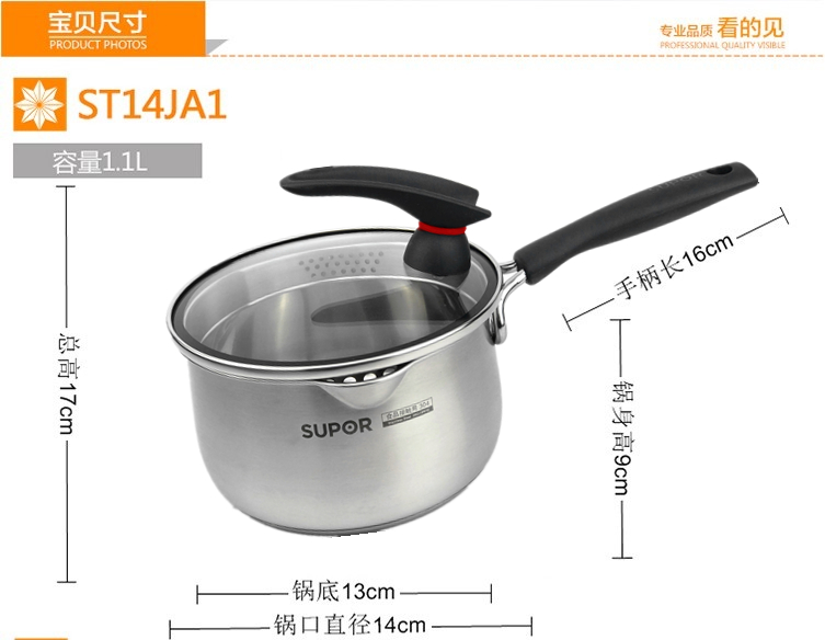 包邮苏泊尔小红圈ST14JA1/ST16JA1巧立304不锈钢复底18cm奶锅汤锅