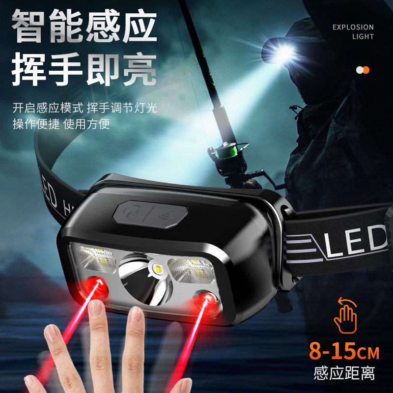 强光头灯充电超亮头戴式夜钓鱼照明户外超长续航超轻感应小手电筒