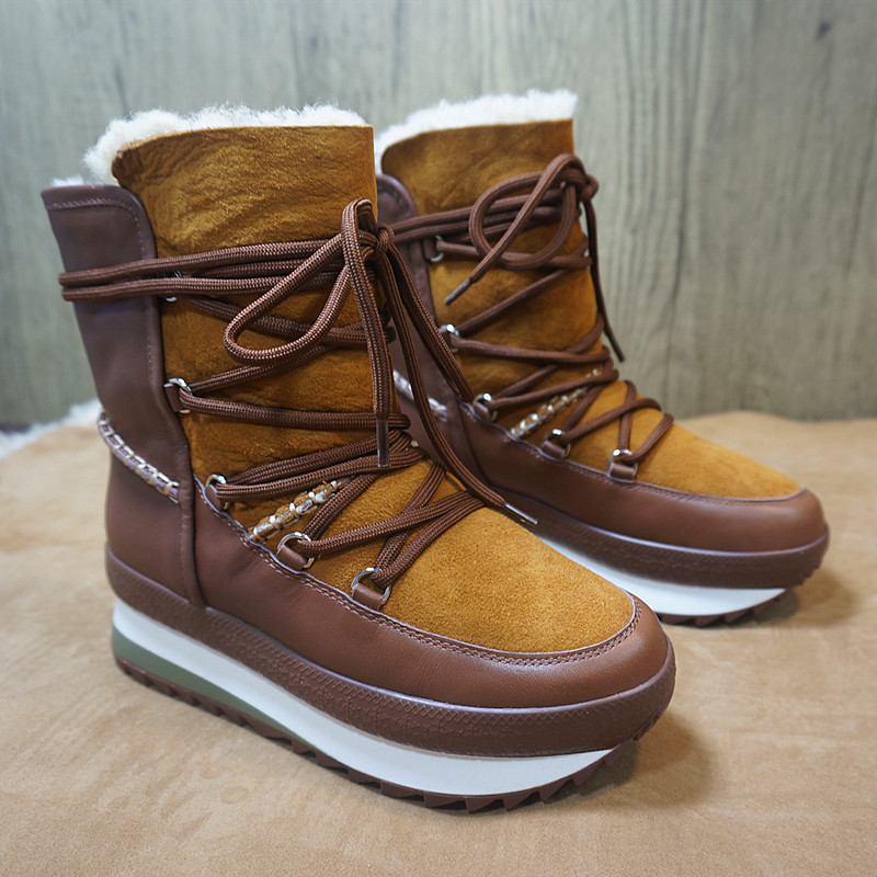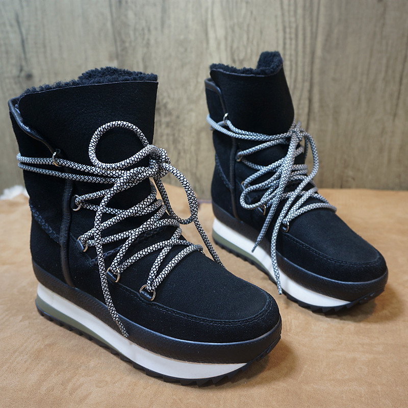 新款真皮牛皮羊毛女士雪地靴 厚底罗马交叉绑带女靴 松糕底22-15