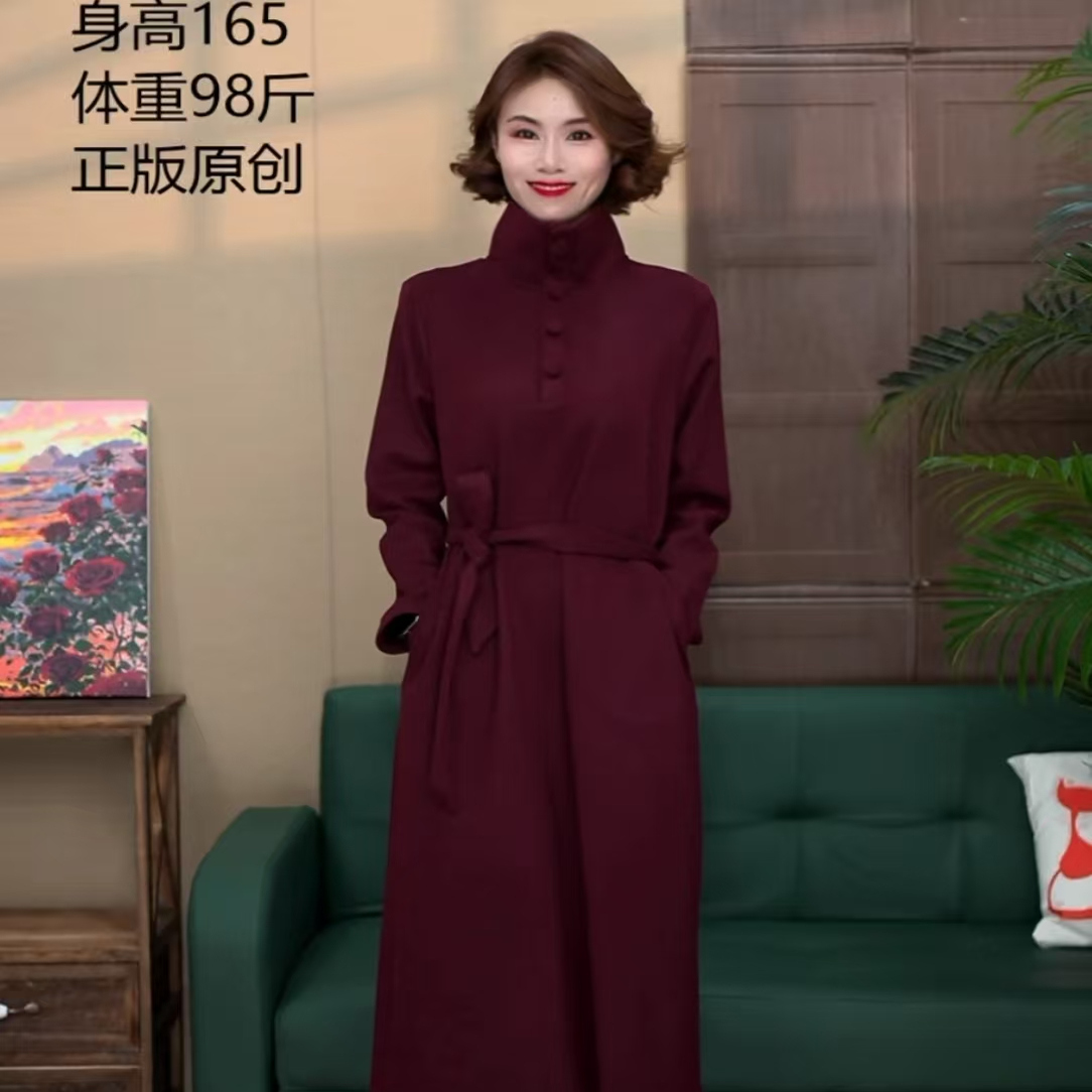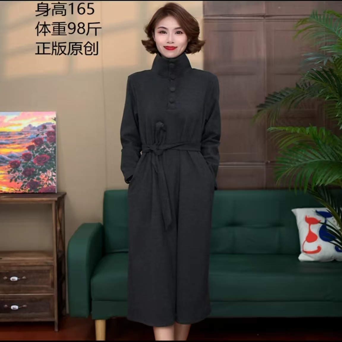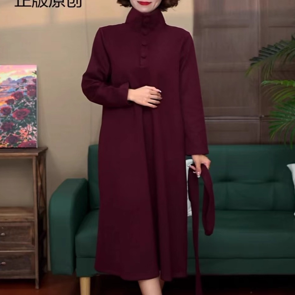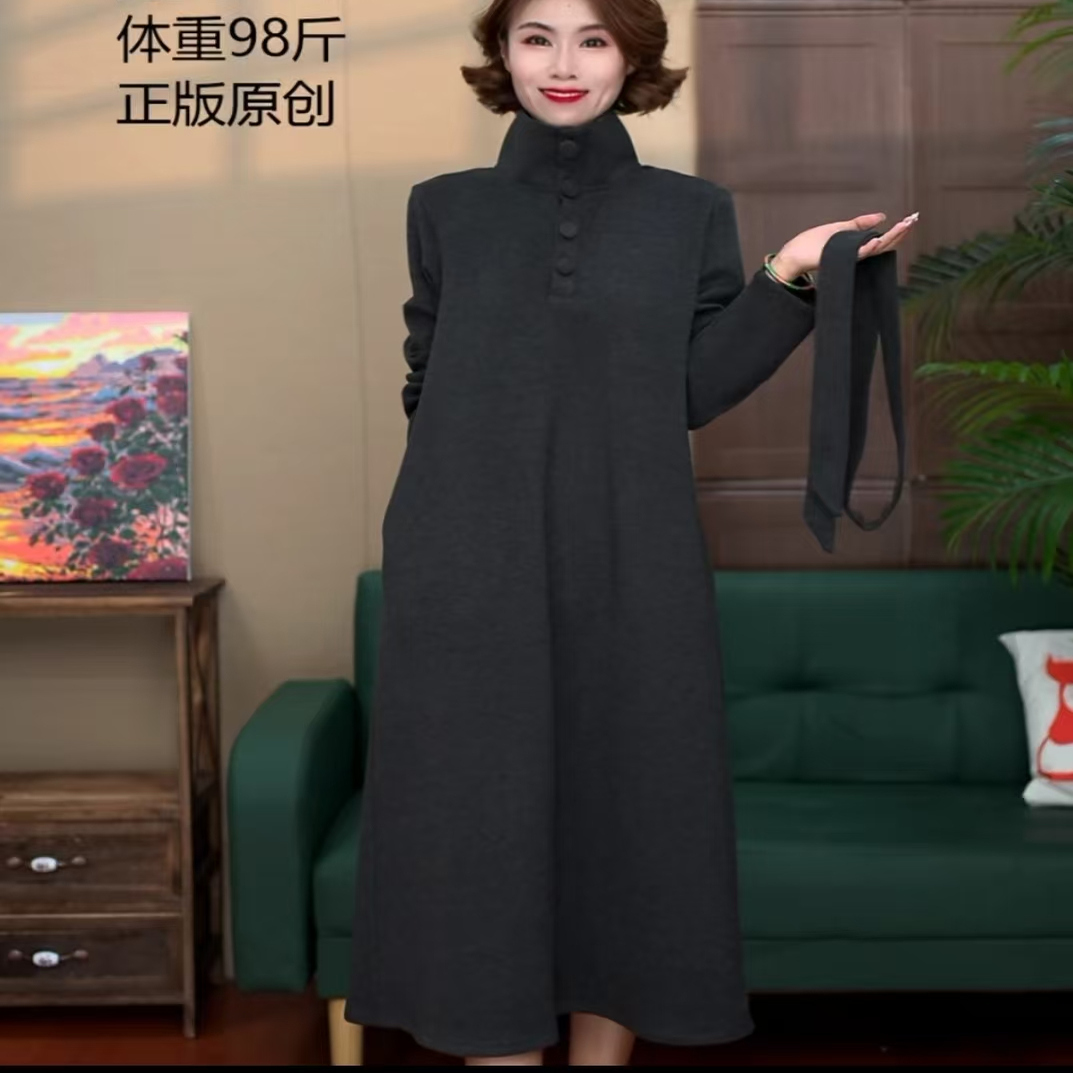 秋冬新款时尚加厚中长款连衣裙女洋气妈妈装宽松显瘦中老年打底裙