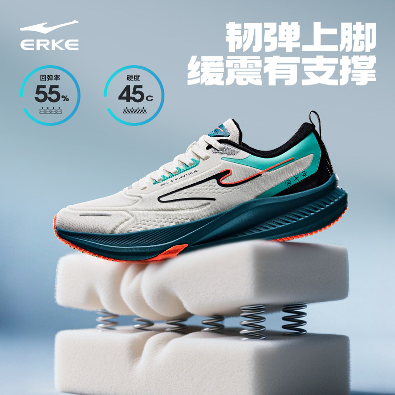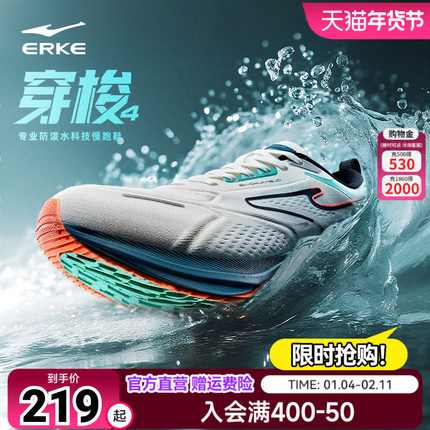 穿梭4鸿星尔克男鞋革面防泼水跑步鞋轻便防滑运动鞋减震透气跑鞋
