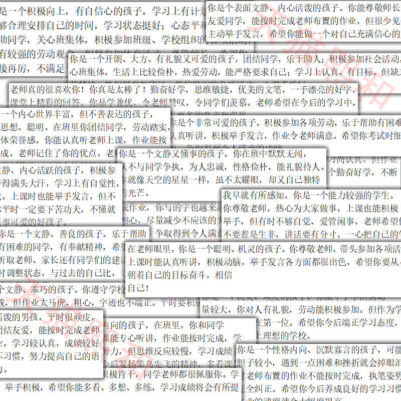 小学生期末评语贴纸200个不同学生学习评价2026年新版教师评语老师鼓励孩子励志语录寄语学期总结定制小贴纸