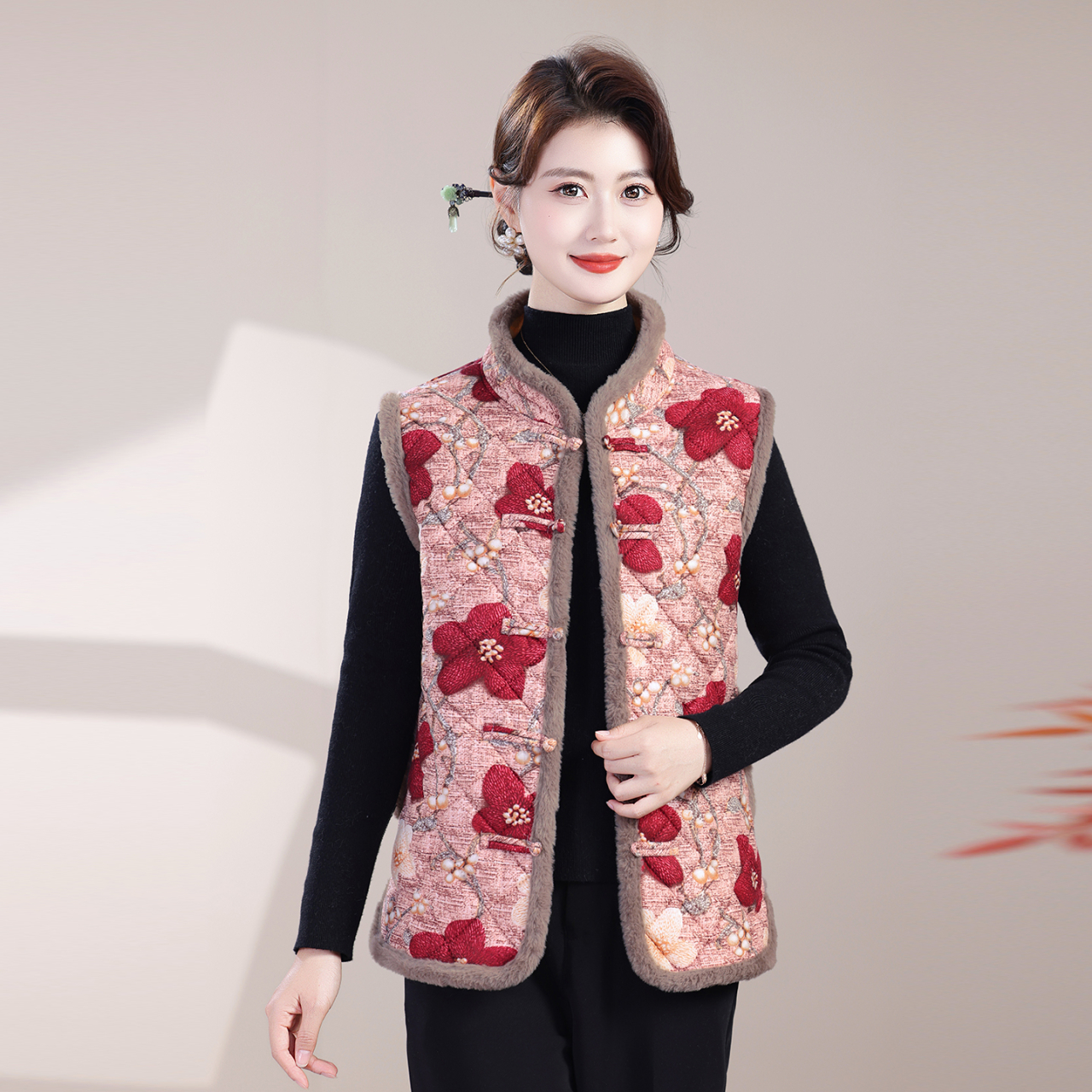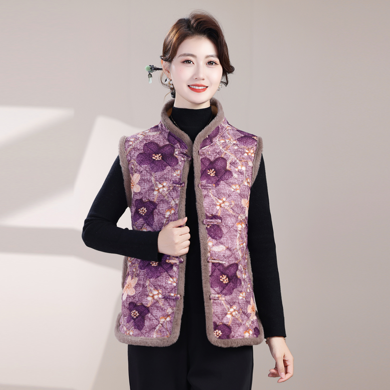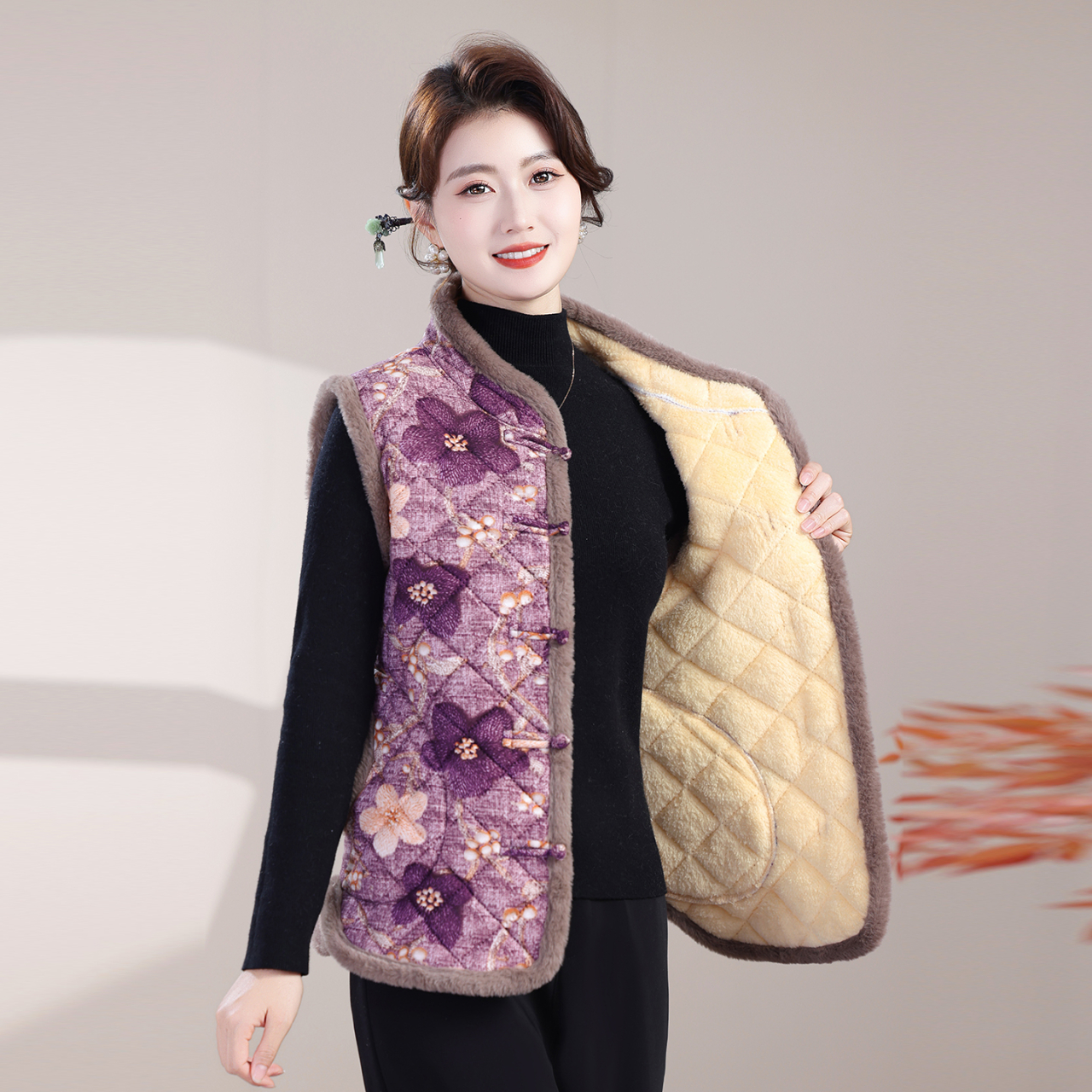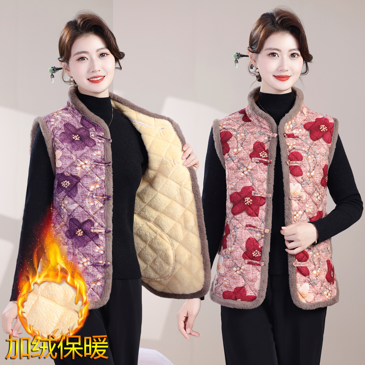 中式妈妈秋冬装国风立领碎花棉马甲外套中老年女加绒加厚坎肩背心