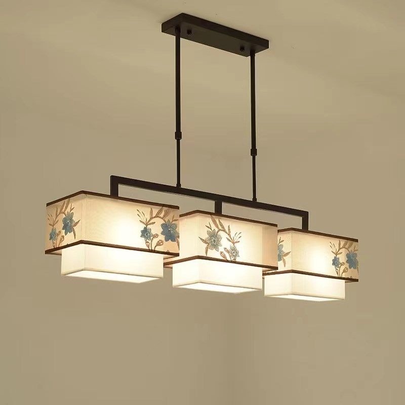 新中式吊灯客厅灯中国风餐厅灯三头家用长方形茶室禅意吧台灯具