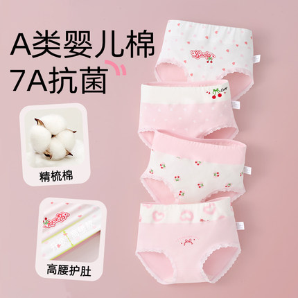 女童高腰内裤儿童三角全棉100%纯棉短裤头不夹pp女孩小学生中大童