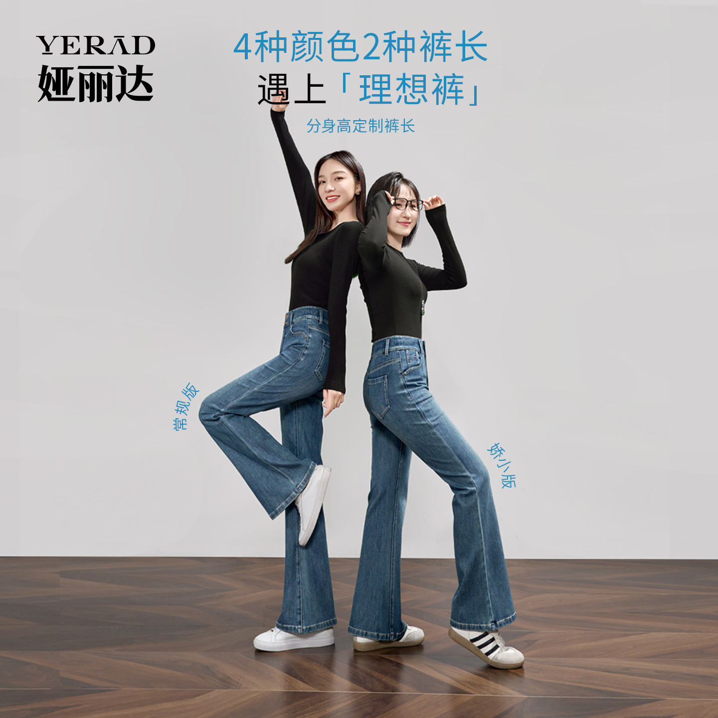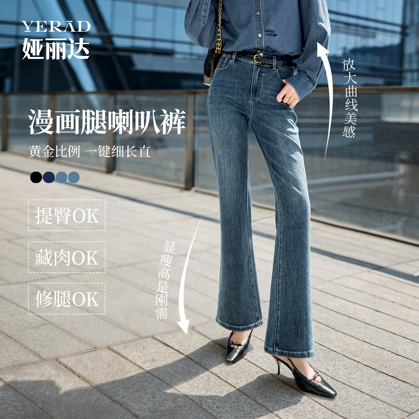 【理想裤】娅丽达锁色高腰弹力微喇牛仔裤2025秋新款梨形加长女裤
