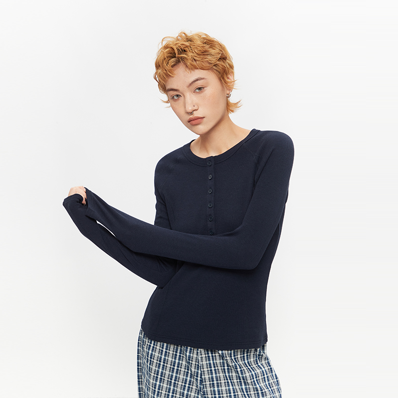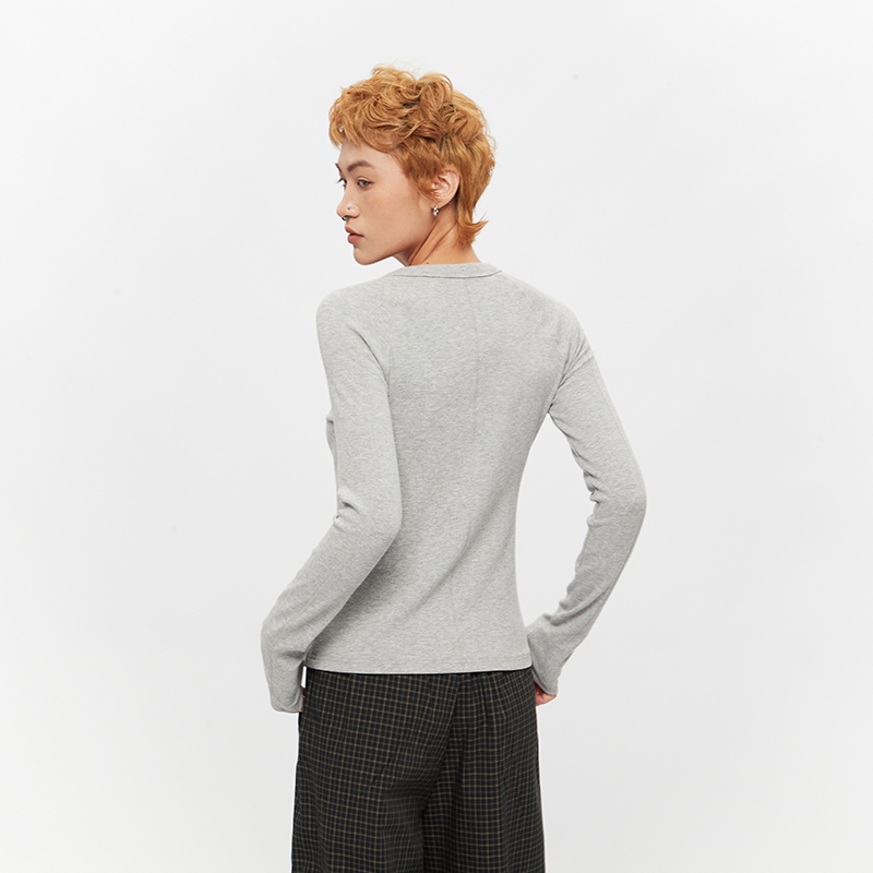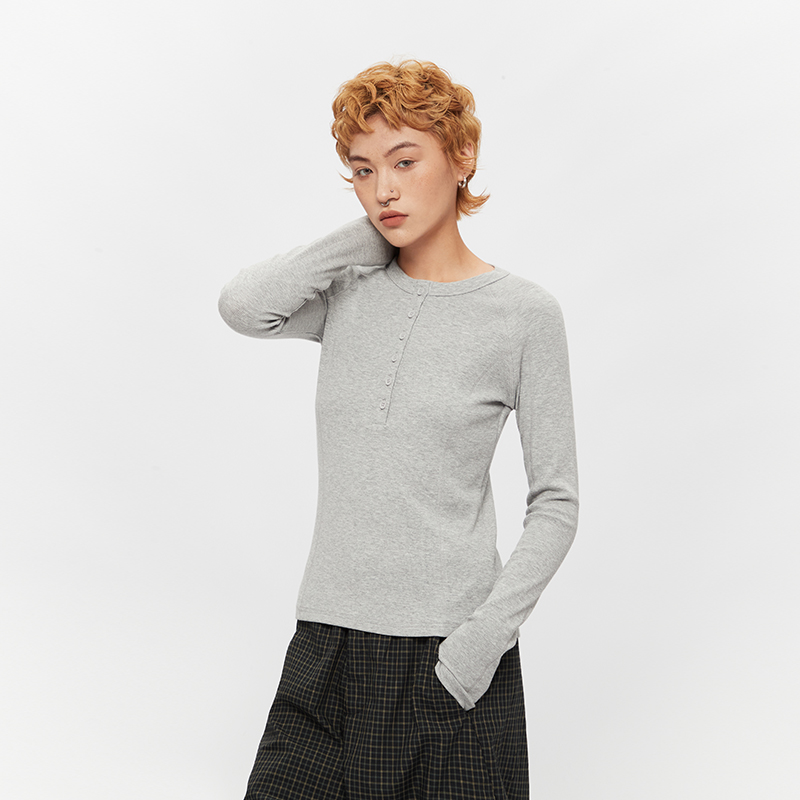 AIRHOOD 美式复古亨利领长袖T恤女秋季新款修身显瘦内搭打底上衣