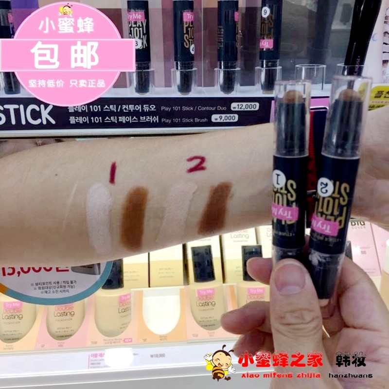 韩国爱丽小屋PLAY101双头高光修容棒 鼻阴影瘦脸遮瑕卧蚕两用笔