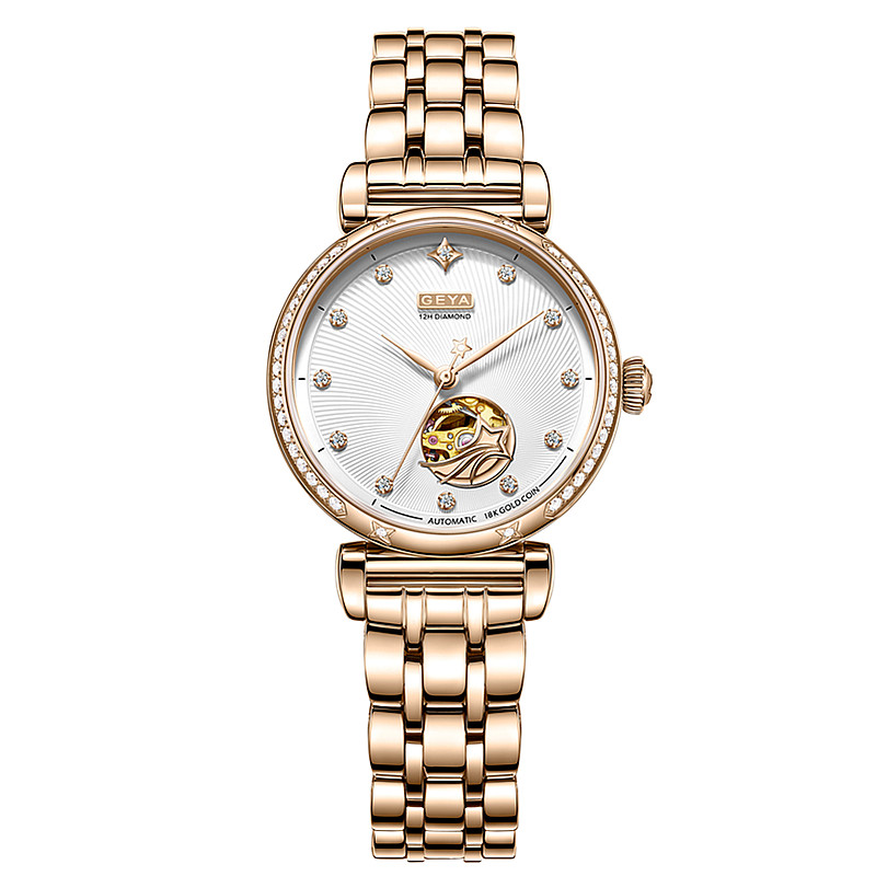 星空系列GEYA格雅手表女士18K金真钻机械表自动G09015LHW镂空9015