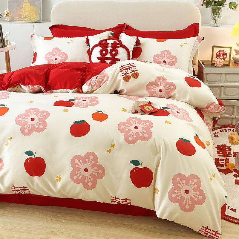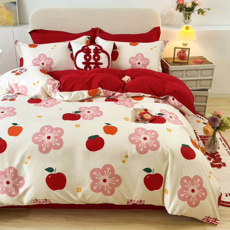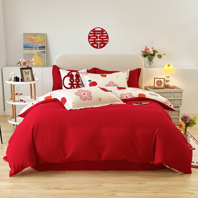 婚庆四件套大红色婚房喜被床单被套陪嫁婚礼结婚床上用品