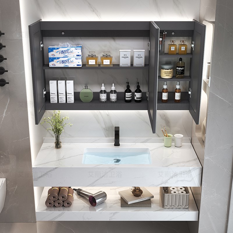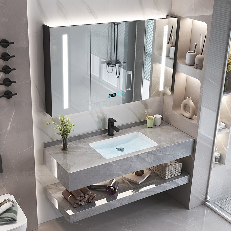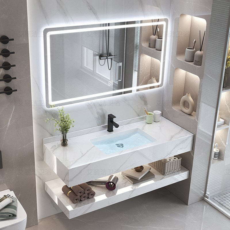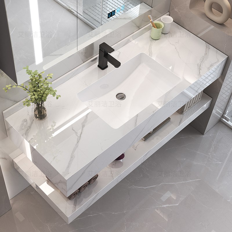 奶油风现代岩板陶瓷亮面无缝盆卫生间洗漱台轻奢洗手.浴室柜组合