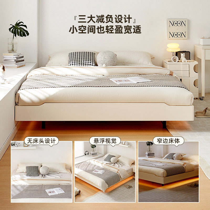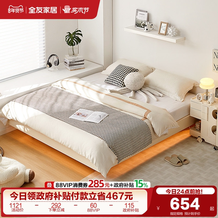 全友家居无床头榻榻米小户型单人床卧室悬浮双人床2025新款家具