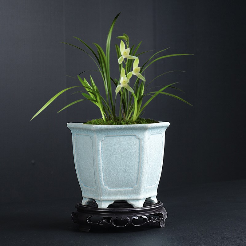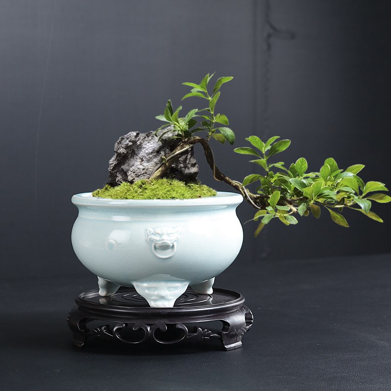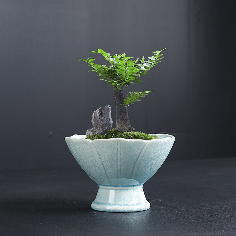 小盆景哥窑透气花盆桌面陶瓷小叶赤楠文竹紫砂盆创意蝴蝶兰绿植盆