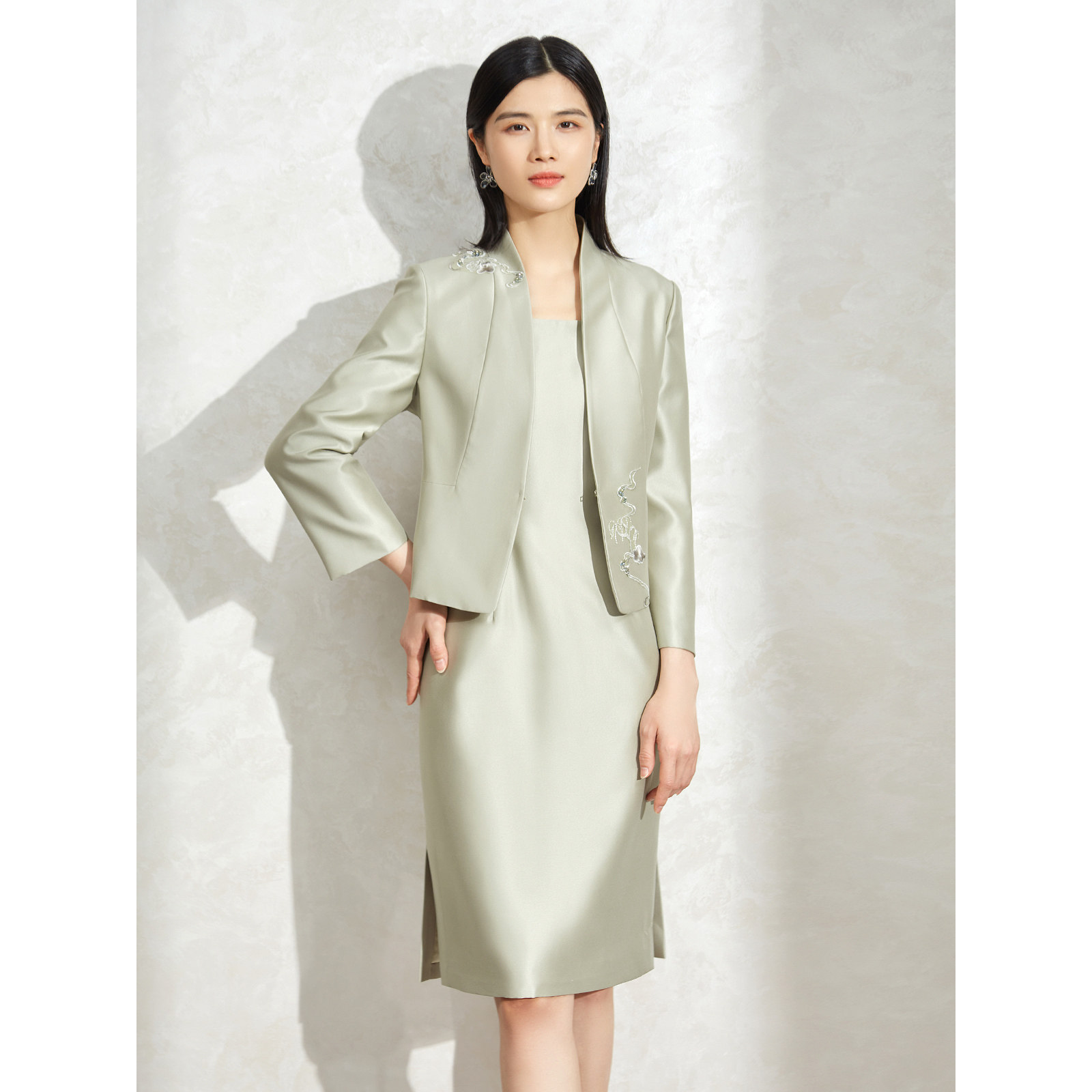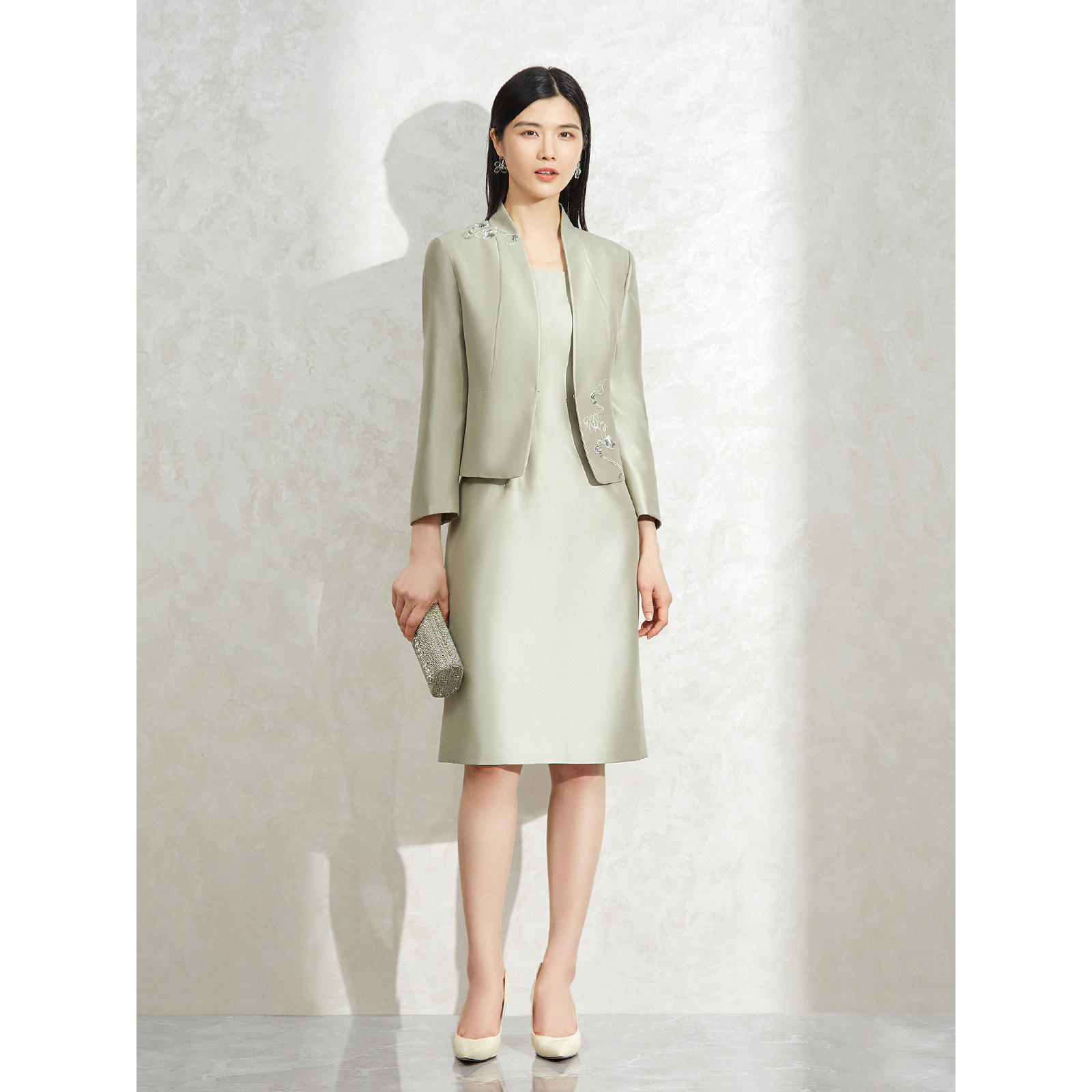粉蓝衣橱东方气质礼服两件套