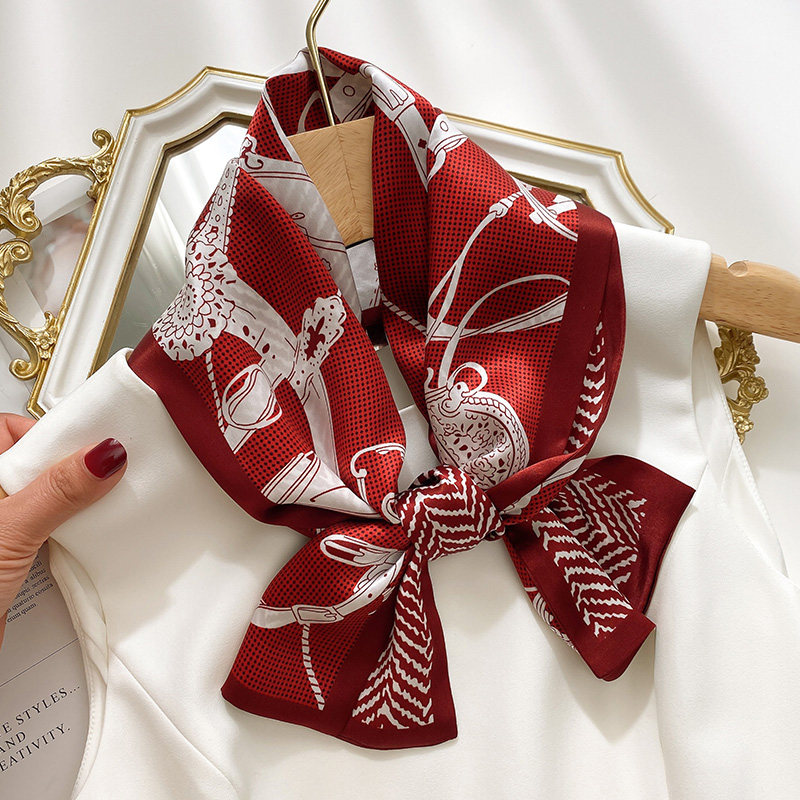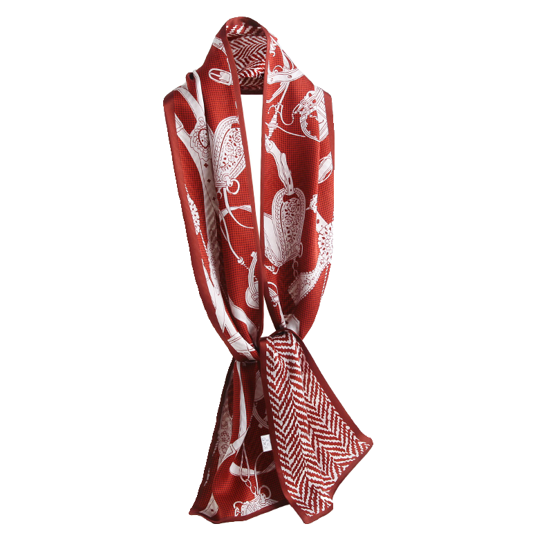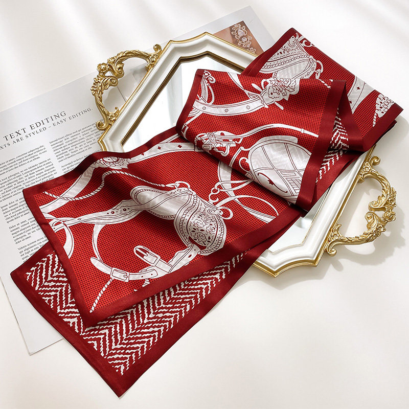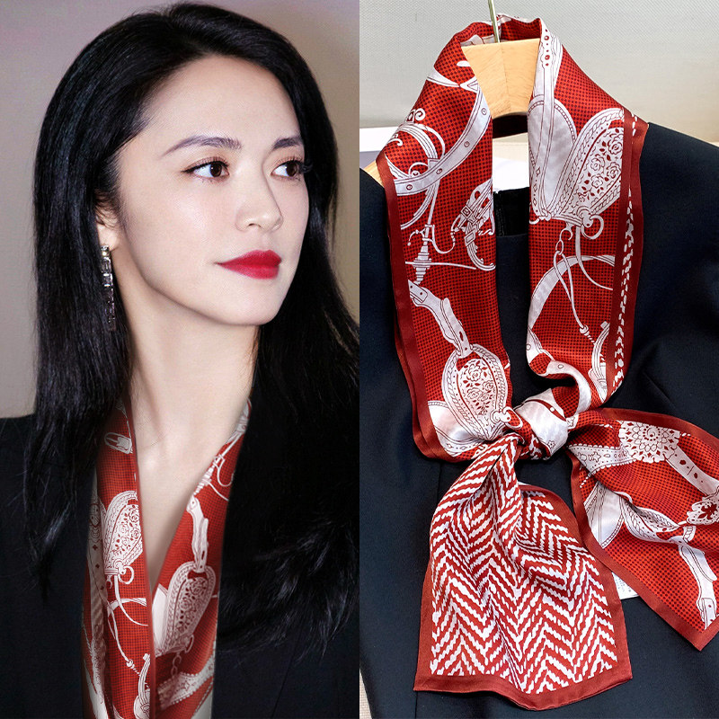 红色真丝长条丝巾系脖高级感女2025新款时尚洋气飘带窄围巾本命年