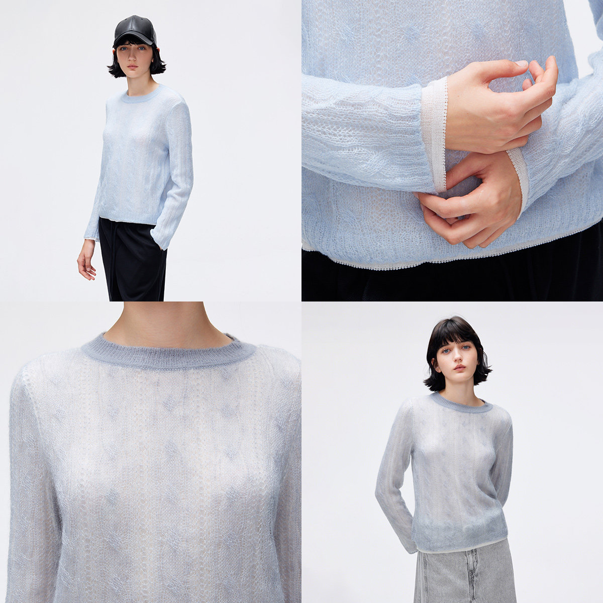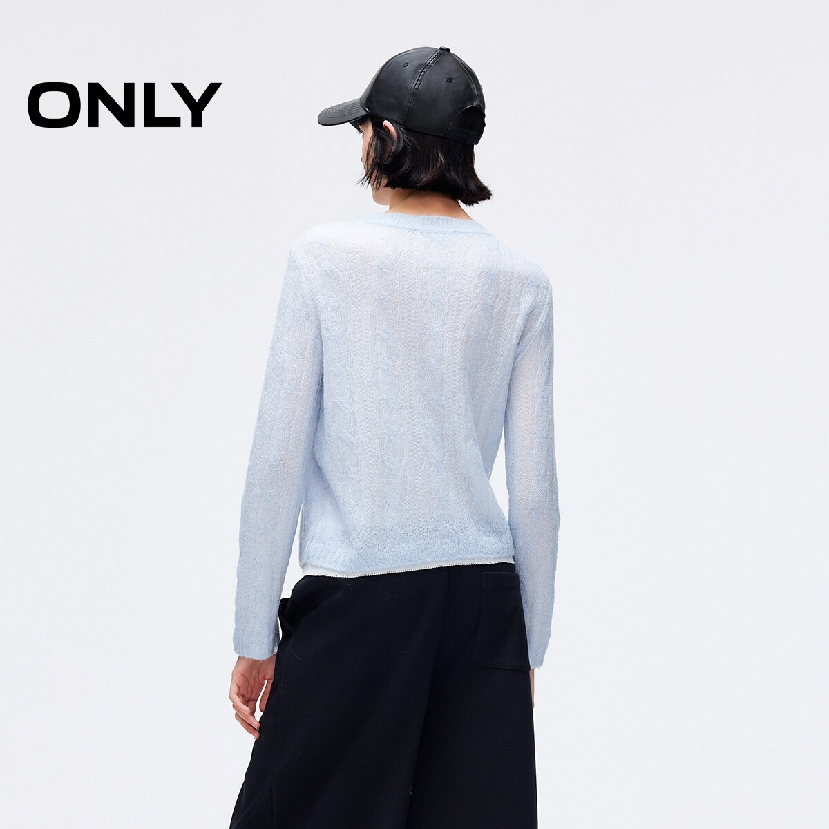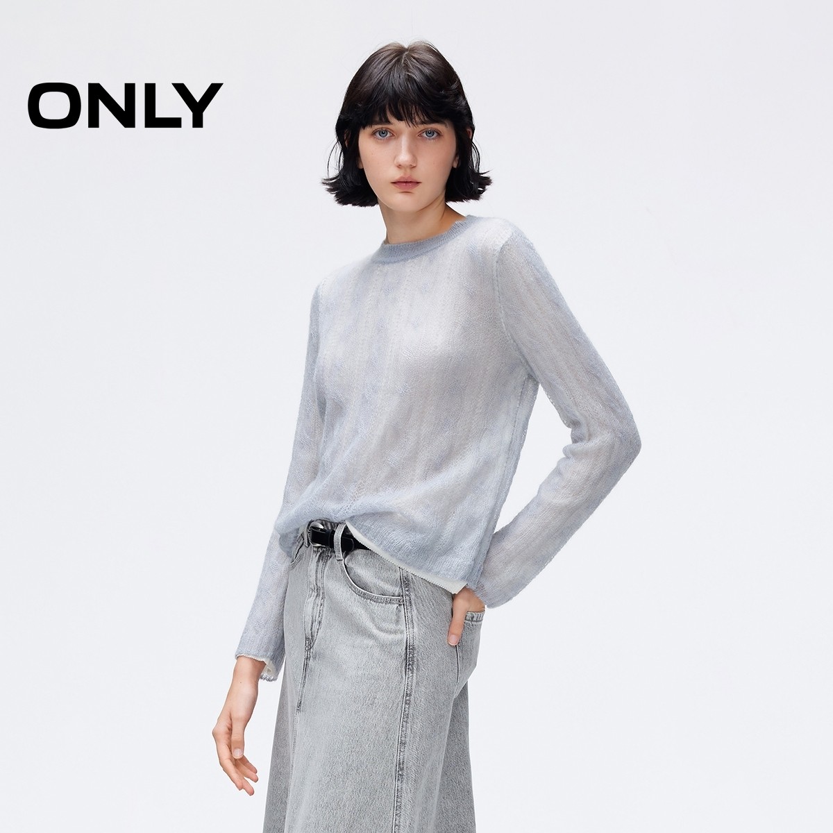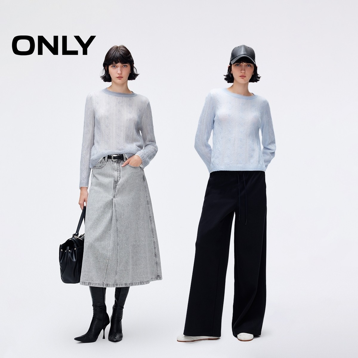 ONLY2025冬季新款甜美层次感假两件长袖正肩圆领毛衣针织衫女