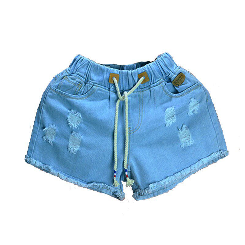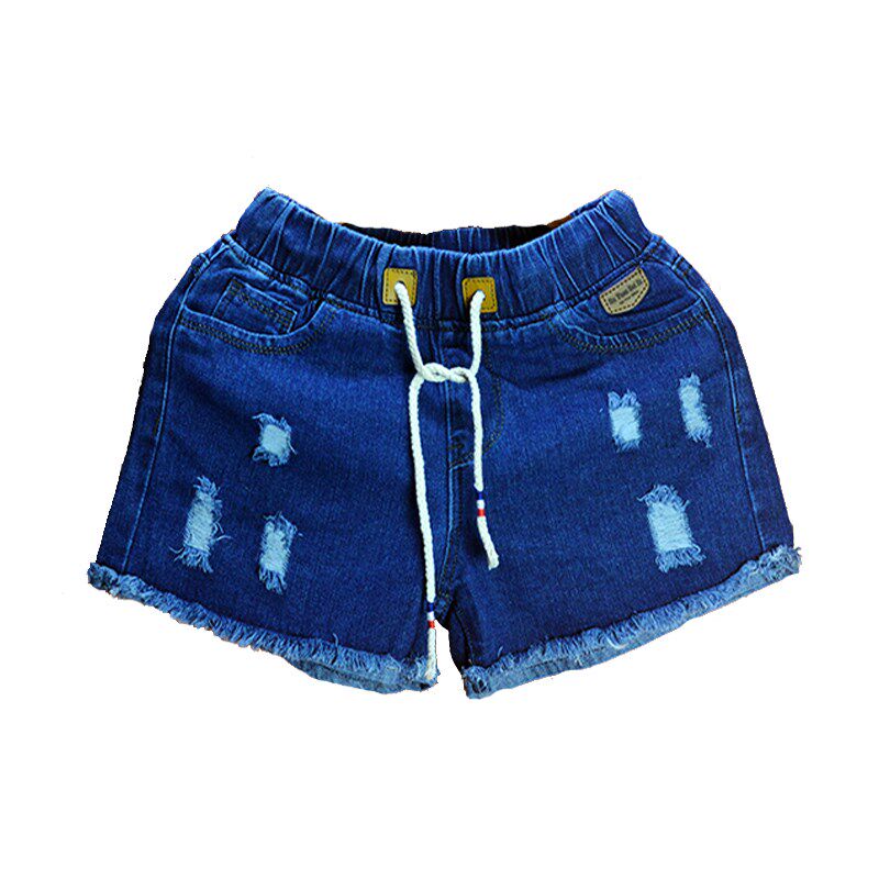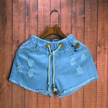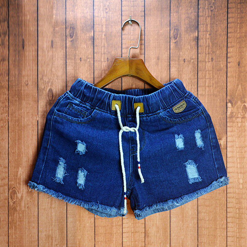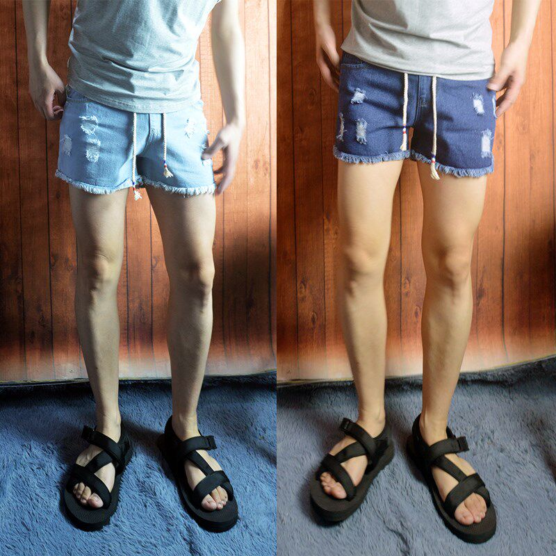 男士松紧腰毛边破洞三分超短牛仔裤女士修身休闲纯色简约牛仔短裤