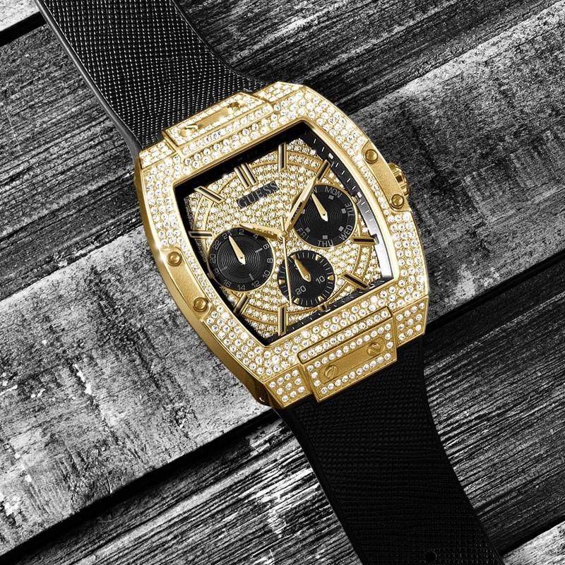 GUESS男士手表潮流石英表盖斯时尚商务酒桶形黑金男表GW0048G2