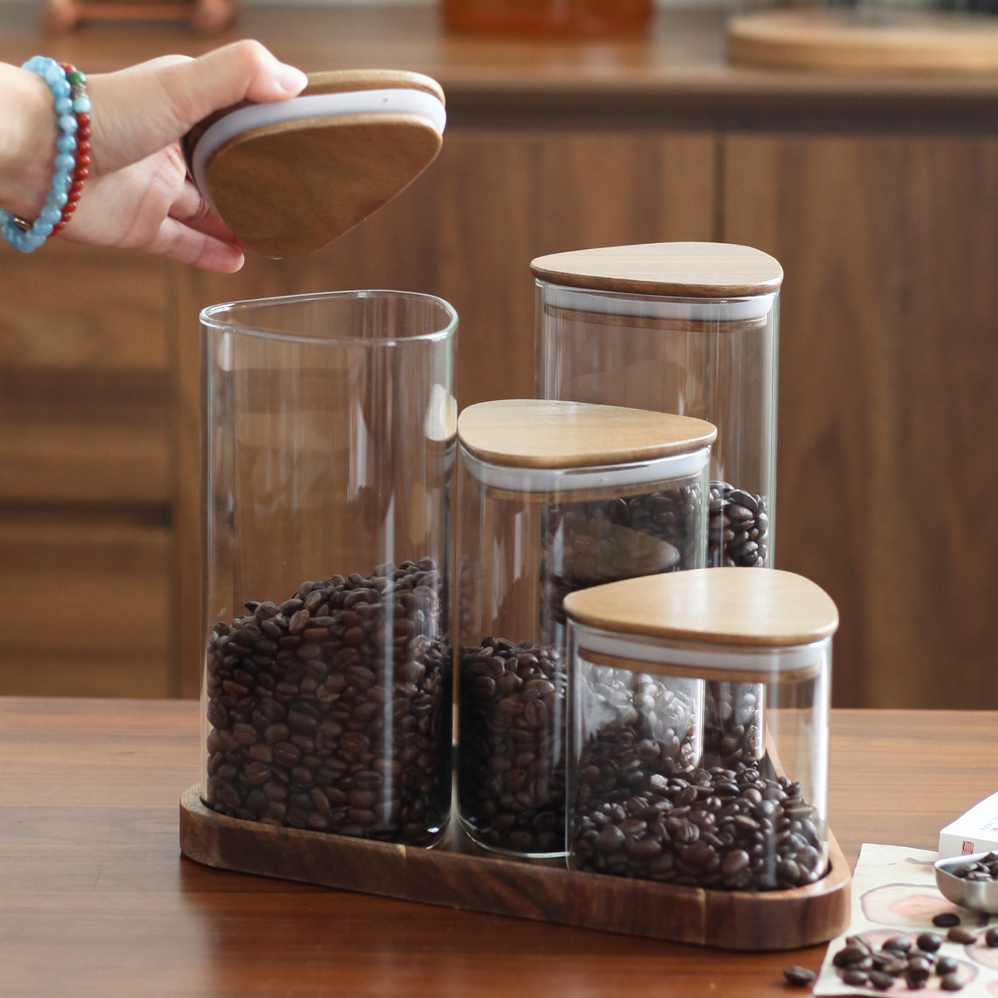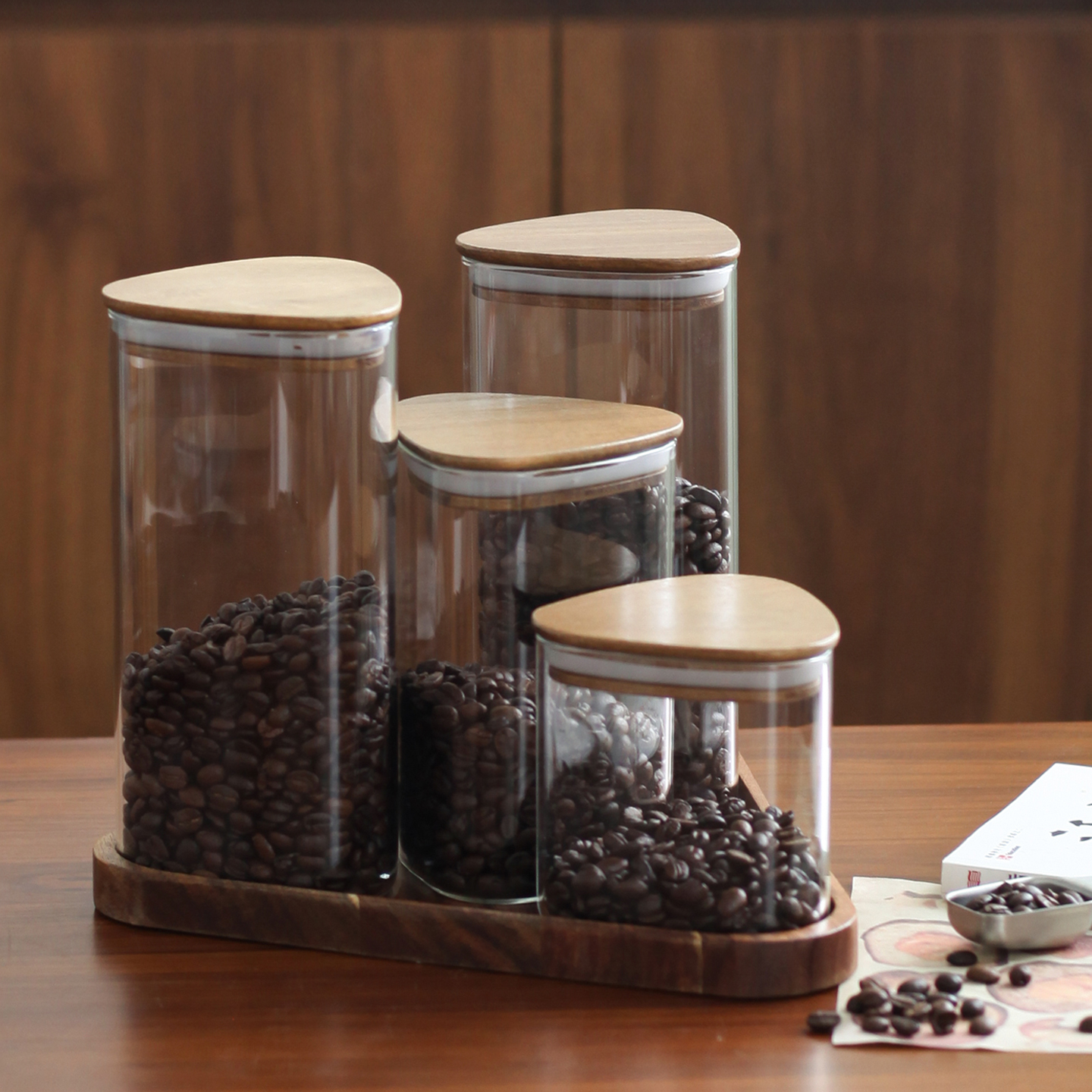 实木托盘咖啡豆密封罐