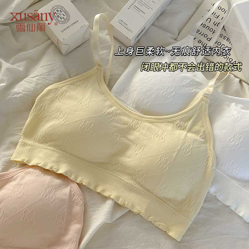 内衣女纯棉无钢圈防下垂聚拢初高中生发育期运动美背显小固定文胸