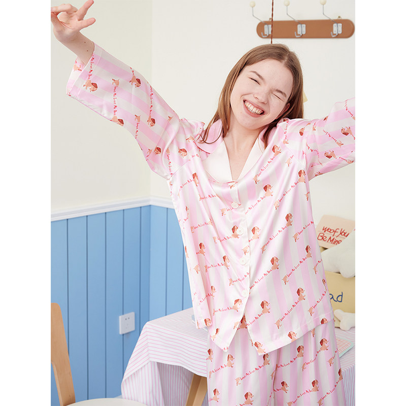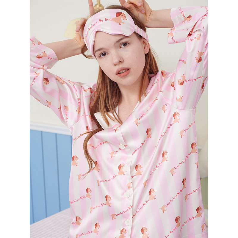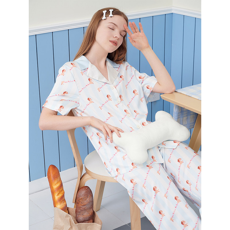 左航同款 RooMance汝曼司 腊肠狗印花冰丝睡衣女款春夏家居服套装