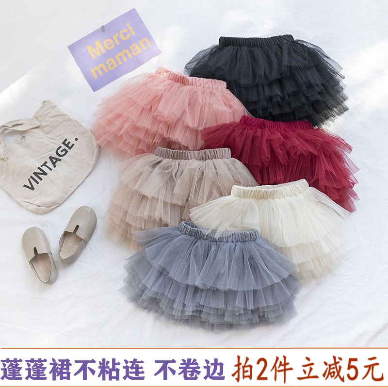 女童半身短裙纱裙蛋糕裙春夏公主裙裤黑色女宝宝纱裙小女孩蓬蓬裙